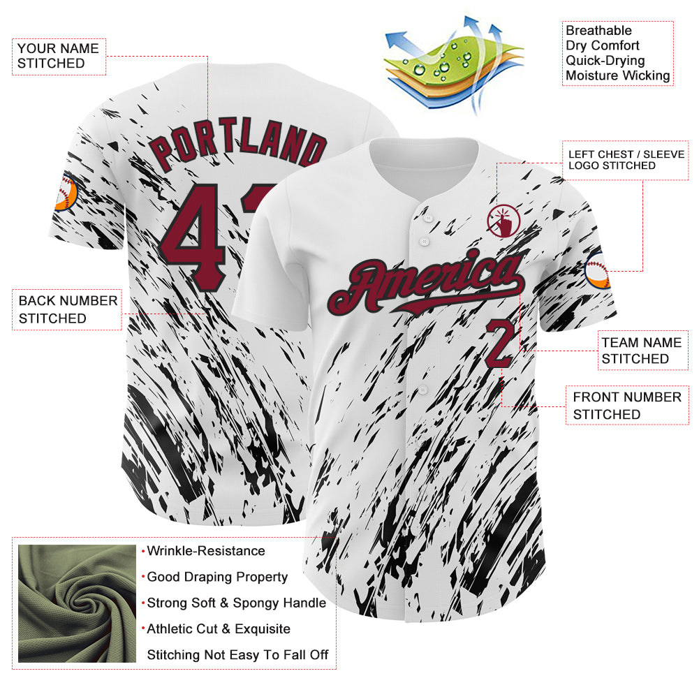 Custom White Crimson-Black 3D Pattern Design Abstract Splash Authentic Baseball Jersey