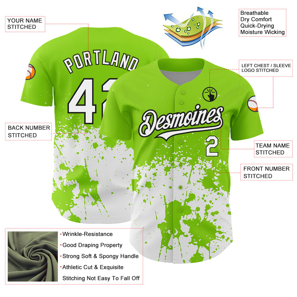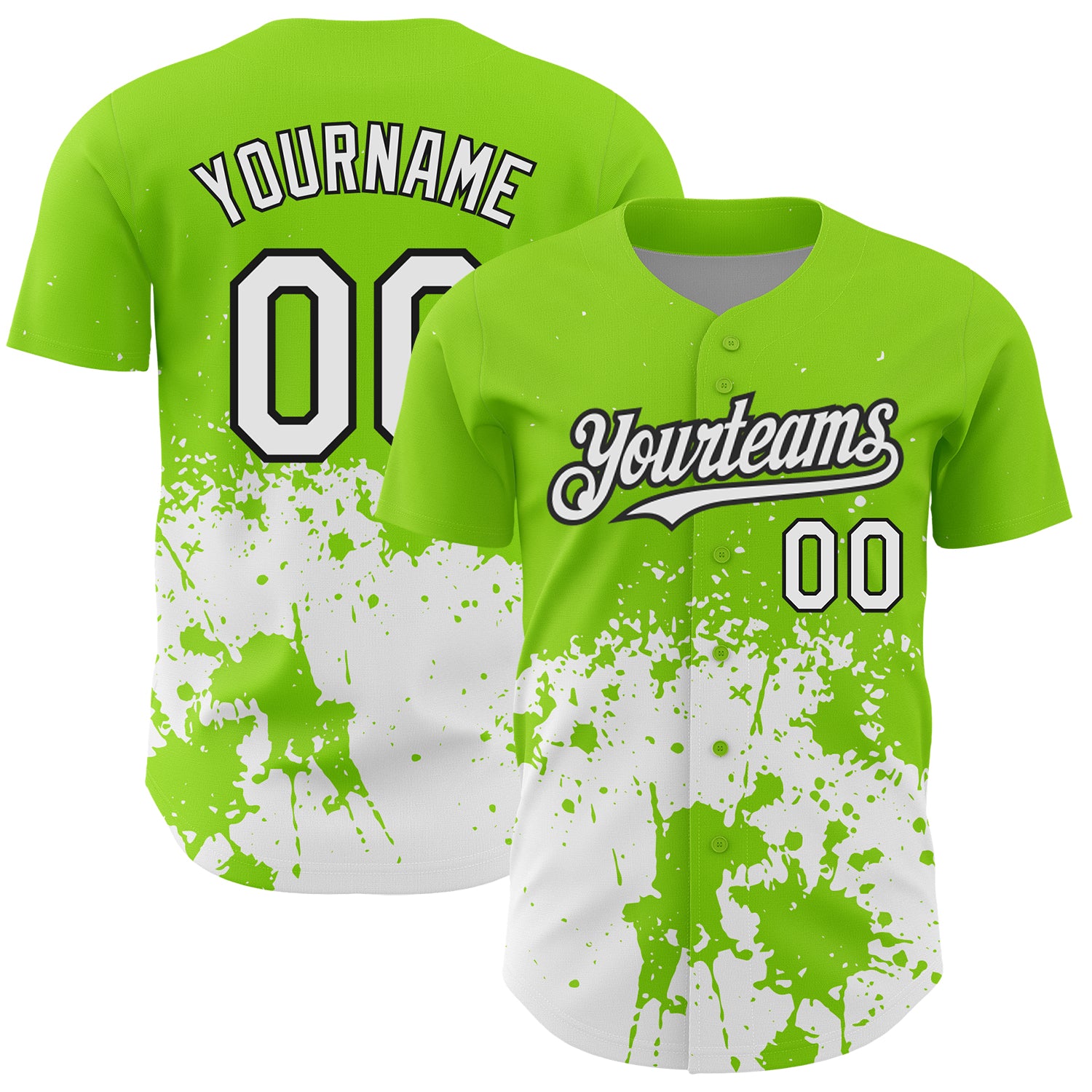 Custom Neon Green White-Black 3D Pattern Design Abstract Splash Grunge Art Authentic Baseball Jersey