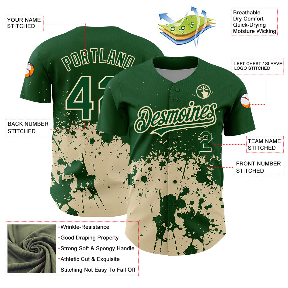 Custom Green City Cream 3D Pattern Design Abstract Splash Grunge Art Authentic Baseball Jersey
