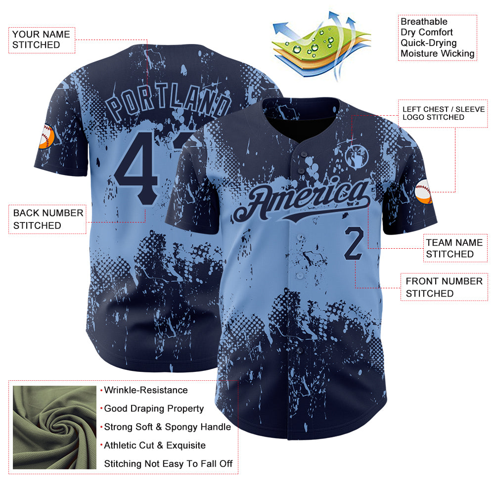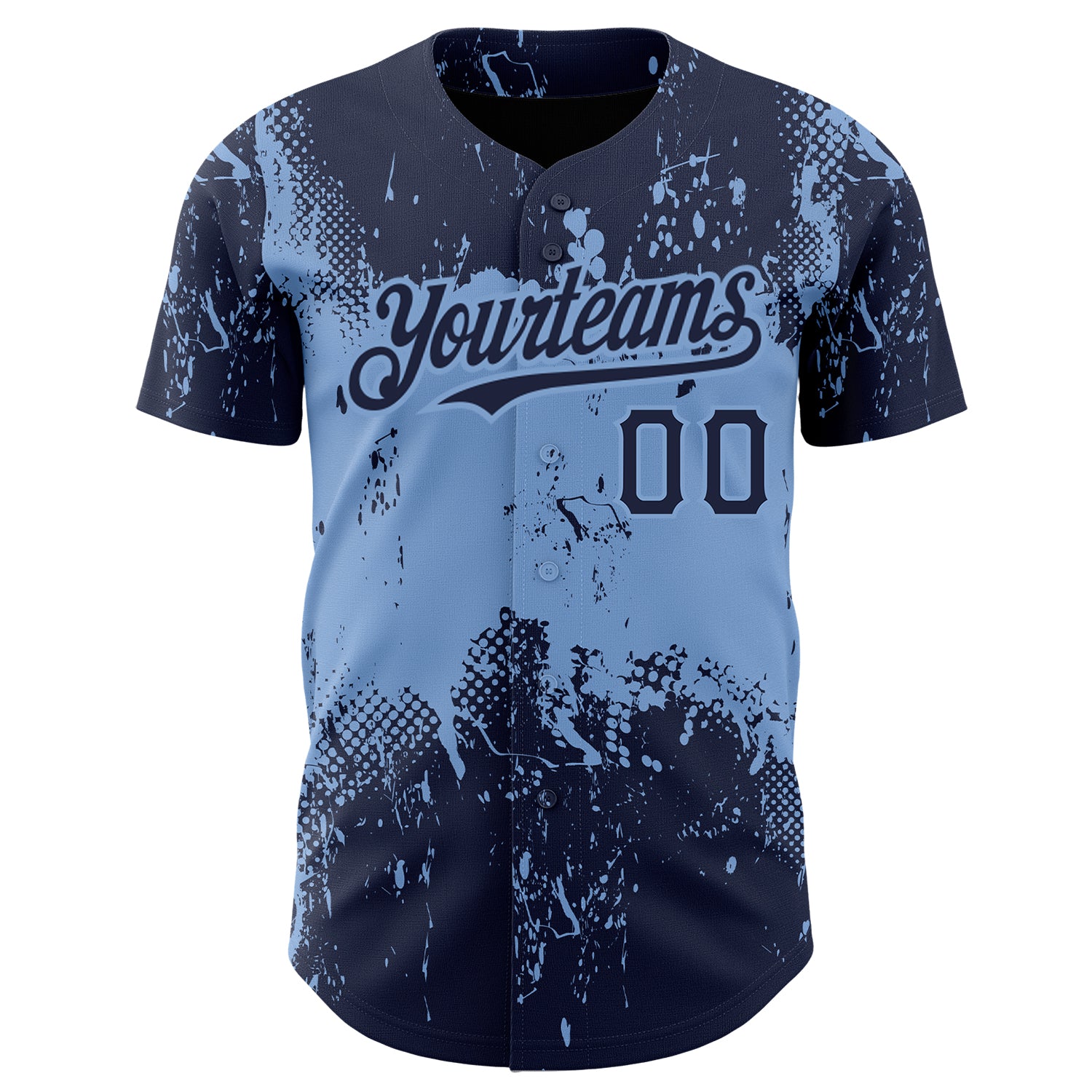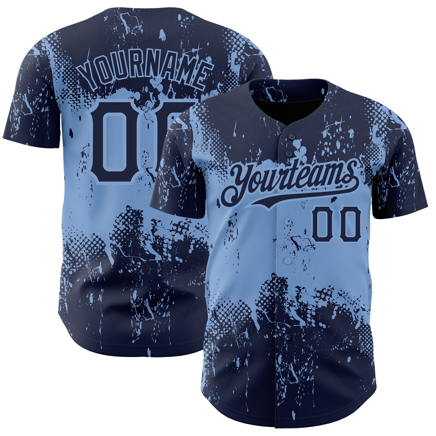Custom Navy Light Blue 3D Pattern Design Abstract Splatter Grunge Art Authentic Baseball Jersey