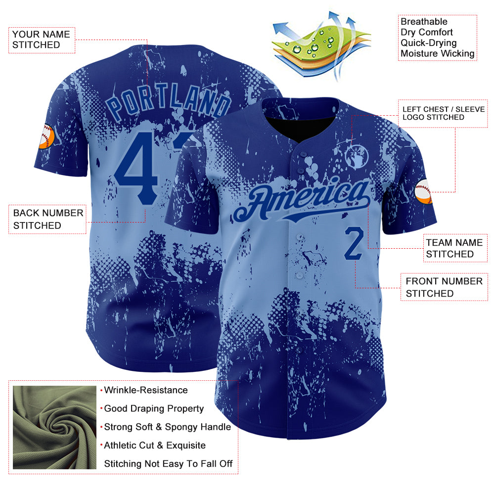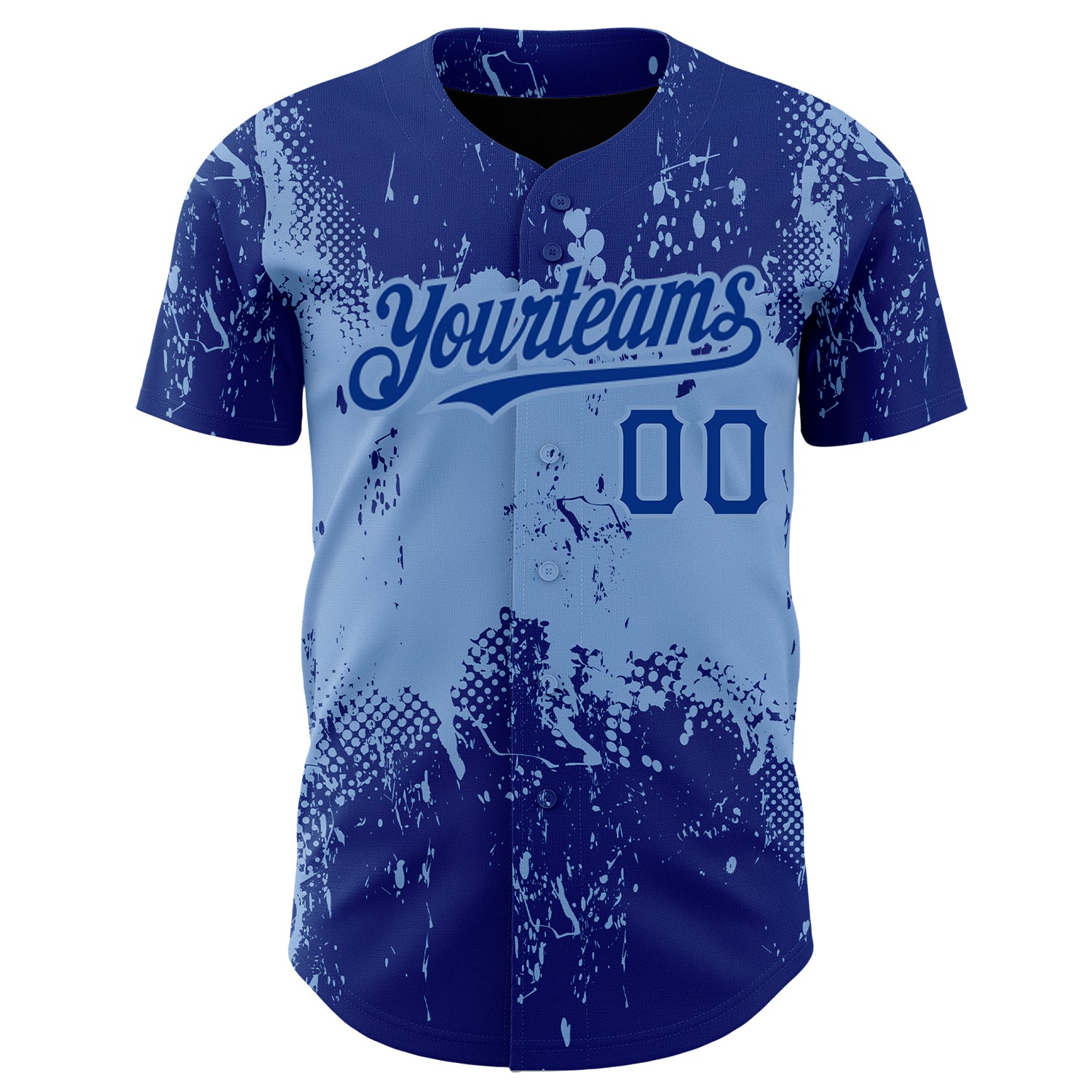 Custom Royal Light Blue 3D Pattern Design Abstract Splatter Grunge Art Authentic Baseball Jersey