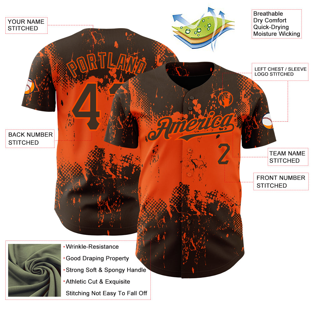 Custom Brown Orange 3D Pattern Design Abstract Splatter Grunge Art Authentic Baseball Jersey