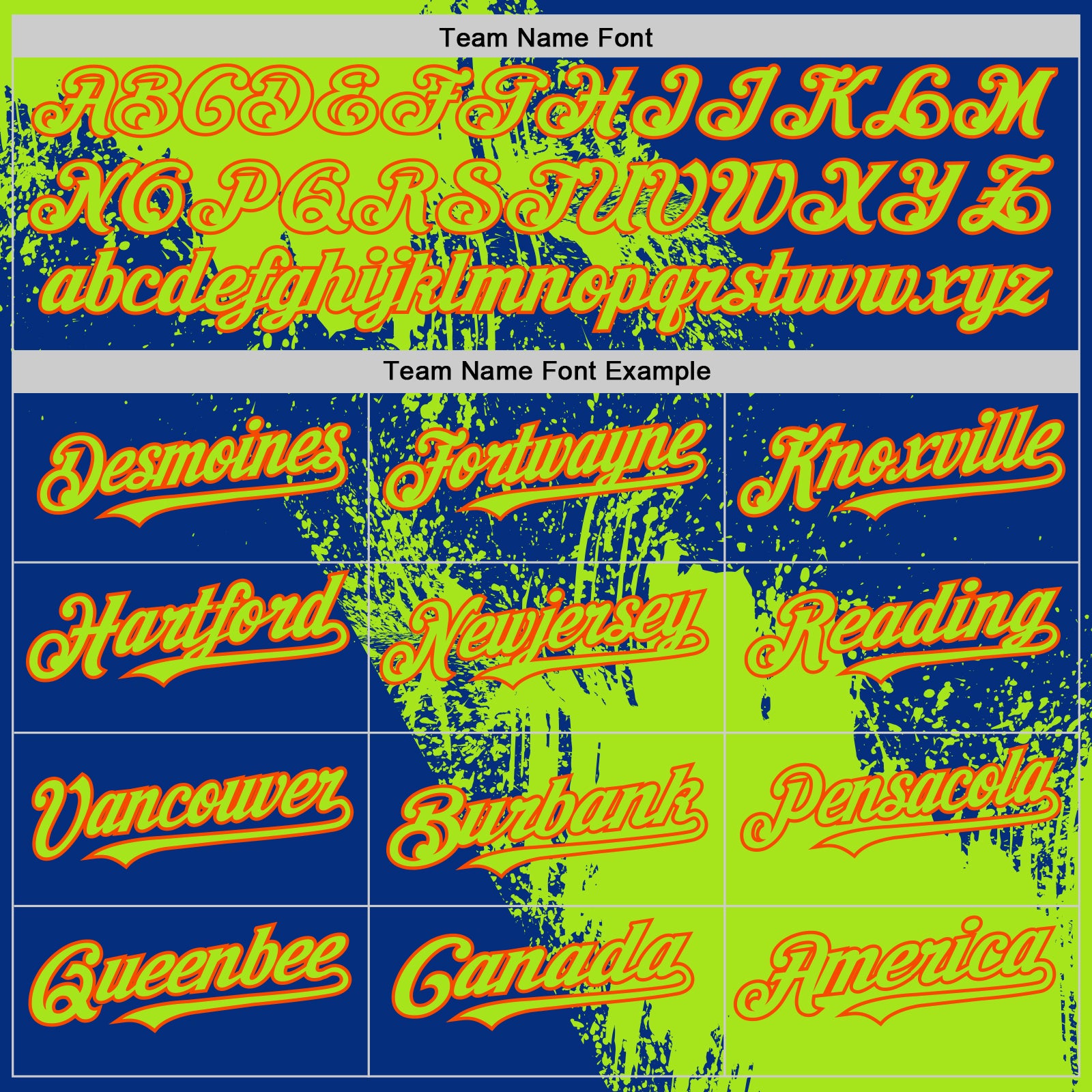 Custom Neon Green Royal-Orange 3D Pattern Design Abstract Brush Stroke Authentic Baseball Jersey