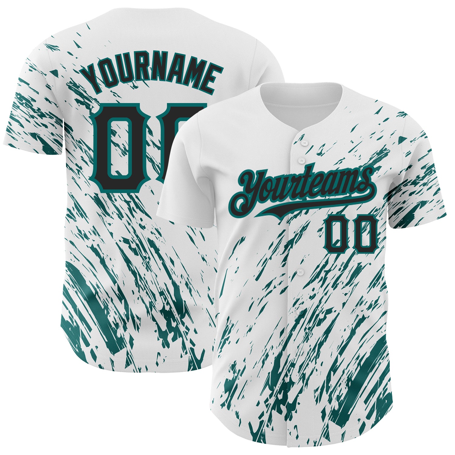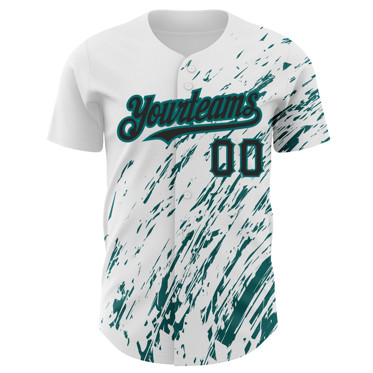 Custom White Black-Teal 3D Pattern Design Abstract Splash Authentic Baseball Jersey