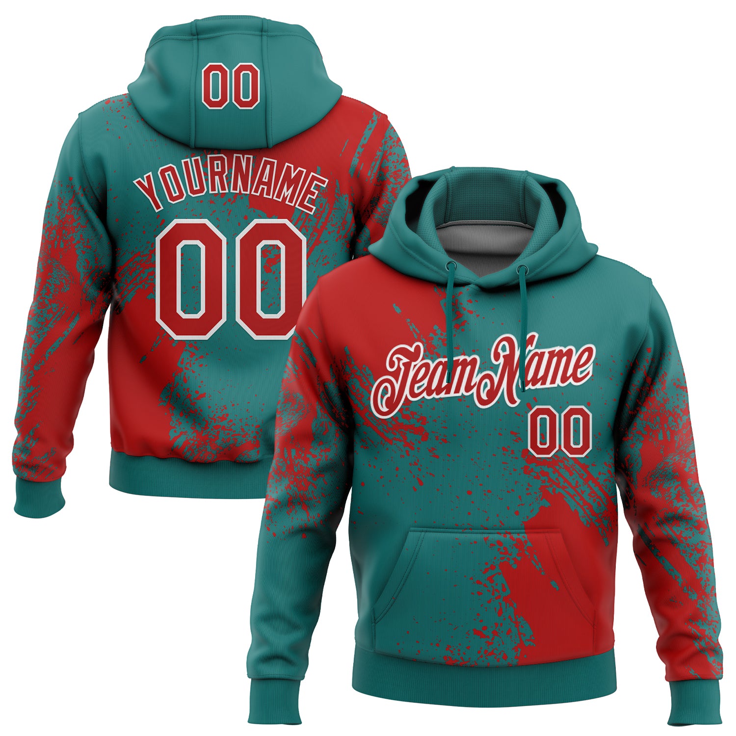 Custom Stitched Teal Red-White 3D Pattern Design Abstract Brush Stroke Sports Pullover Sweatshirt Hoodie