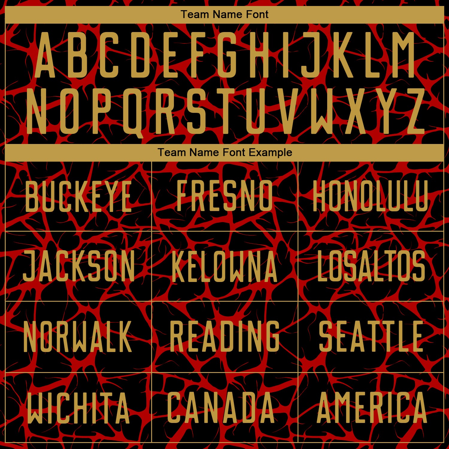 Custom Black Old Gold-Red Abstract Network Splash Sublimation Soccer Uniform Jersey