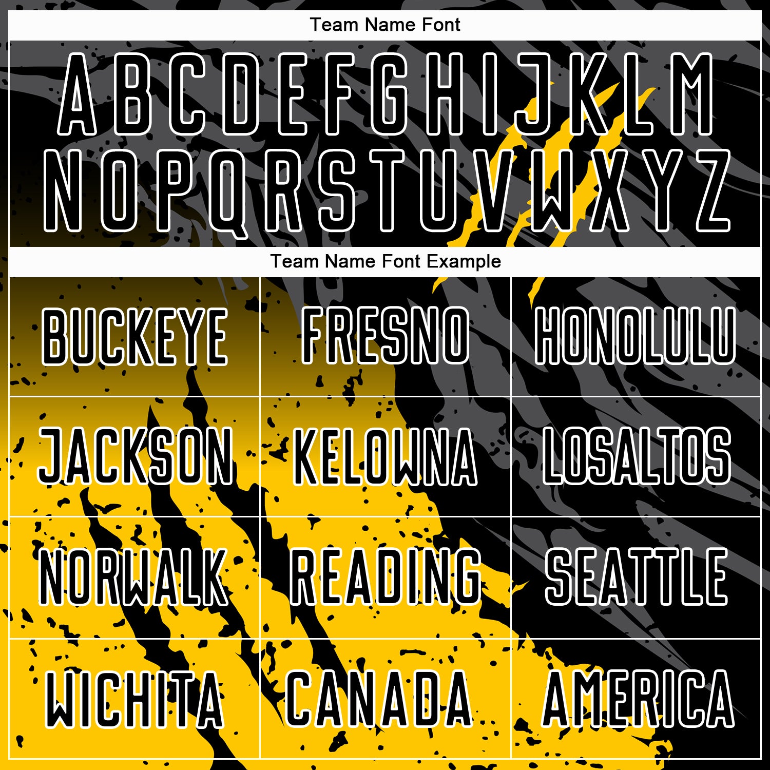 Custom Black Yellow-White Gradient Scratch Splash Sublimation Soccer Uniform Jersey