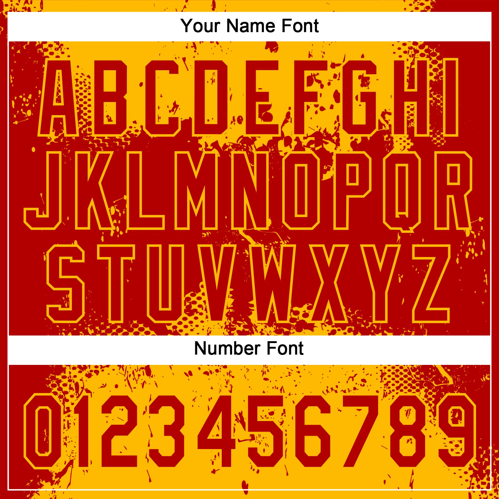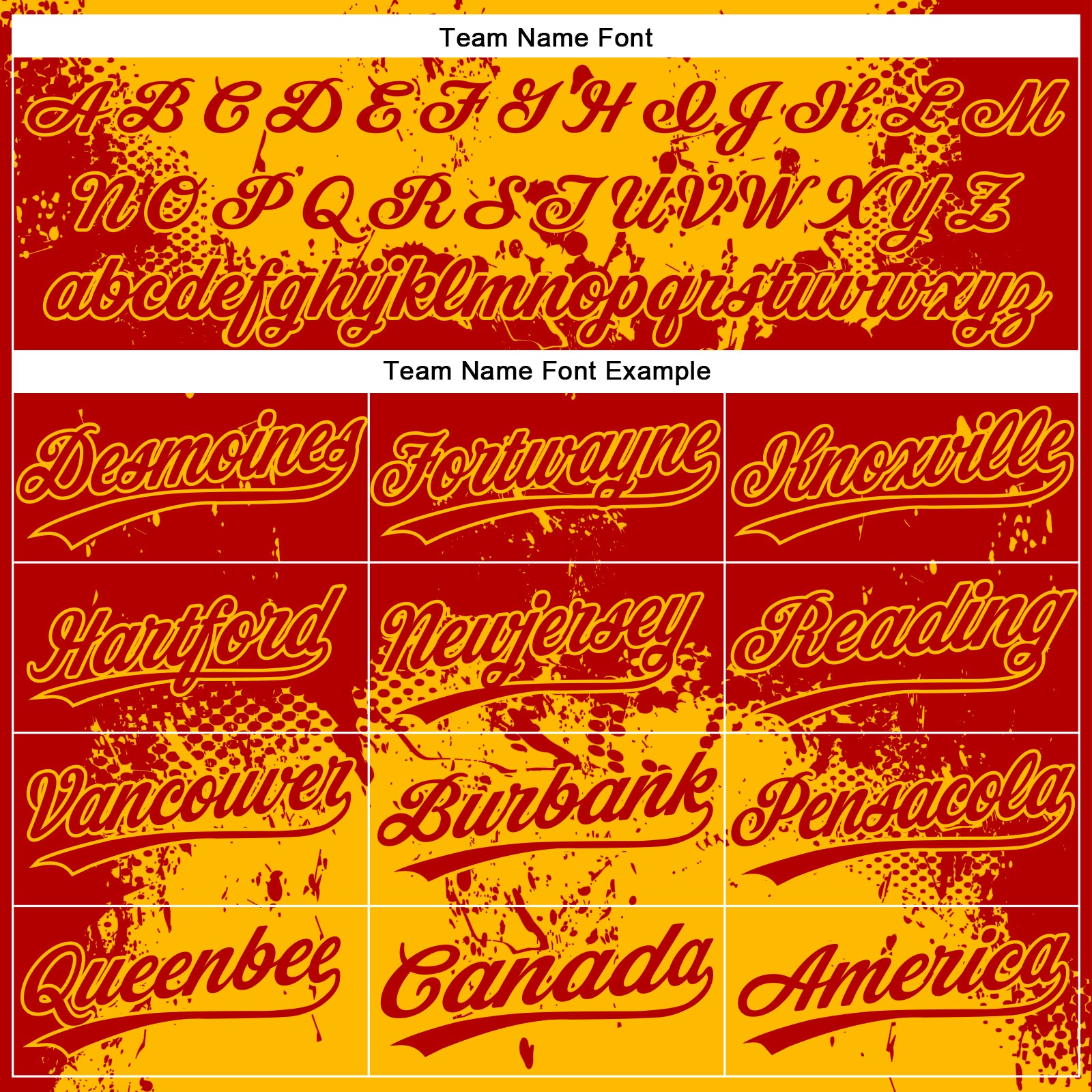 Custom Red Gold 3D Pattern Abstract Splatter Grunge Art Two-Button Unisex Softball Jersey