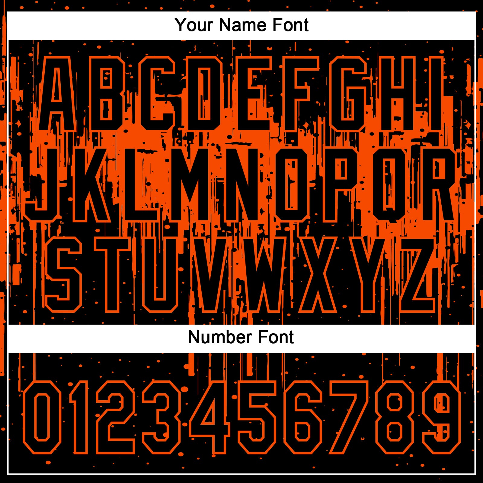Custom Black Orange 3D Pattern Dripping Splatter Art Two-Button Unisex Softball Jersey