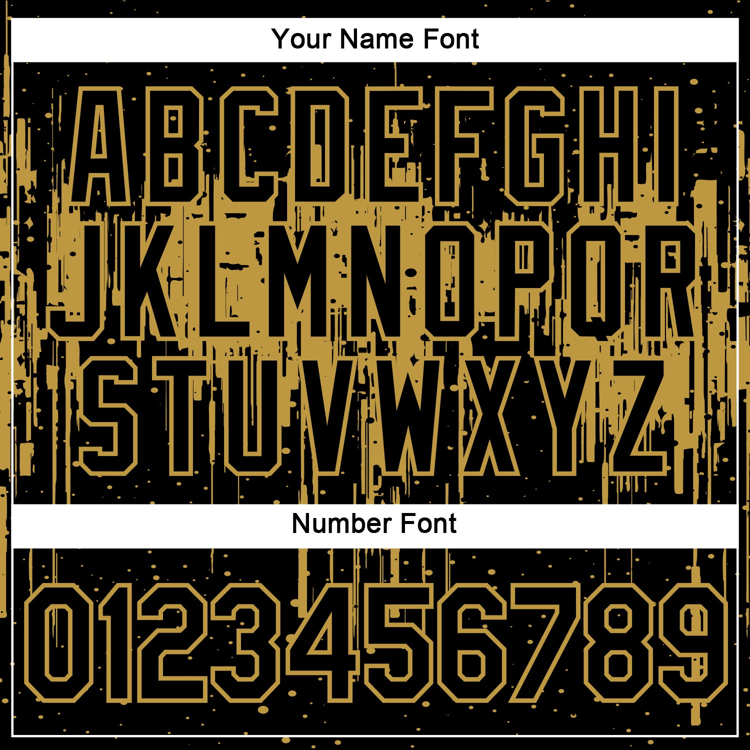 Custom Black Old Gold 3D Pattern Design Dripping Splatter Art Performance T-Shirt