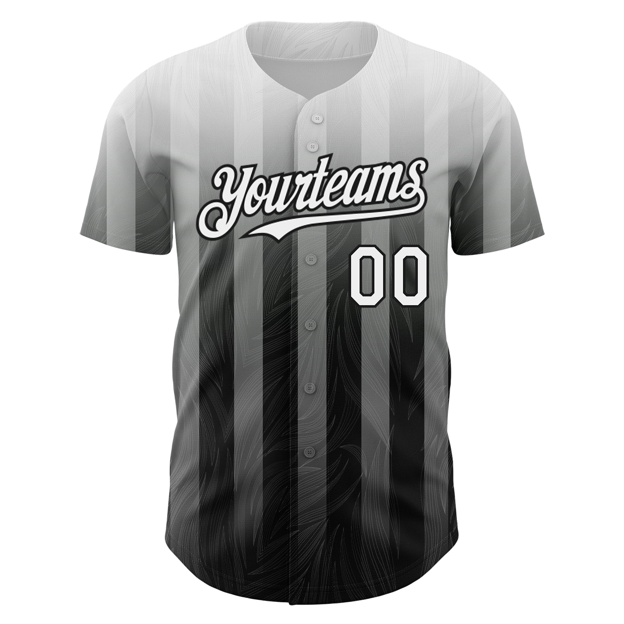 Custom Gray White-Black 3D Pattern Design Stripes Authentic Baseball Jersey