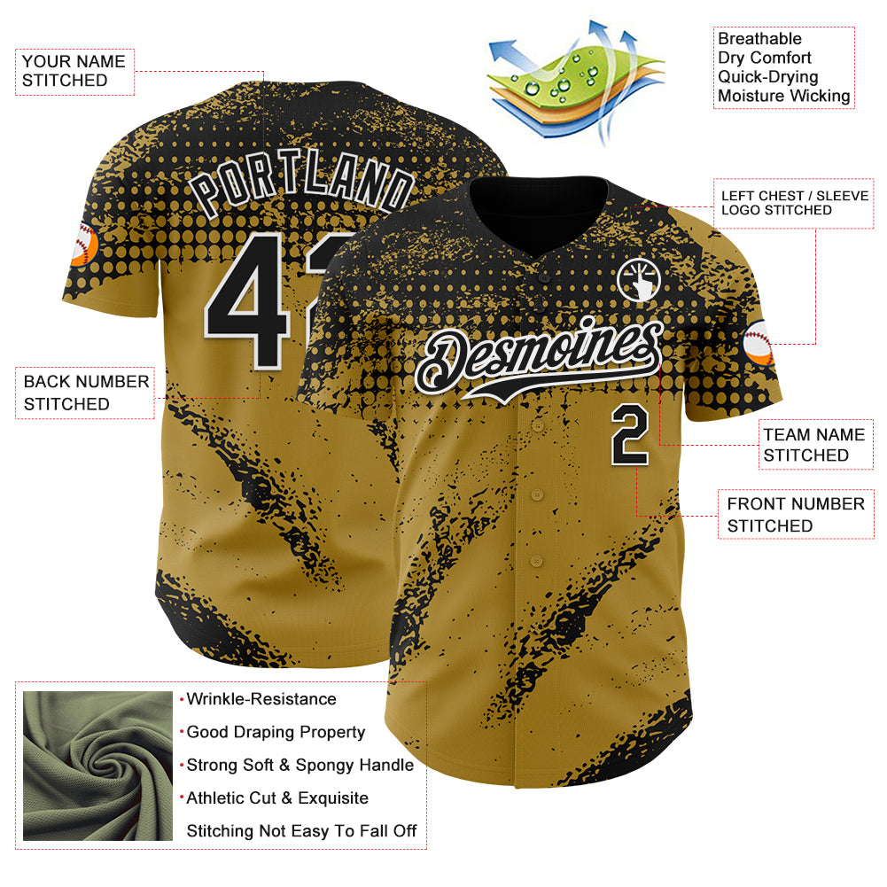 Custom Black Old Gold-White 3D Pattern Design Splash Grunge Fragment Authentic Baseball Jersey