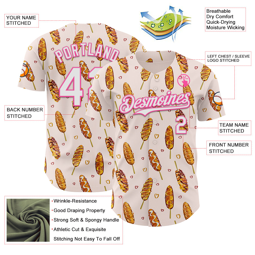 Custom Light Pink White-Pink 3D Pattern Design Foodie Asian Corndog Authentic Baseball Jersey