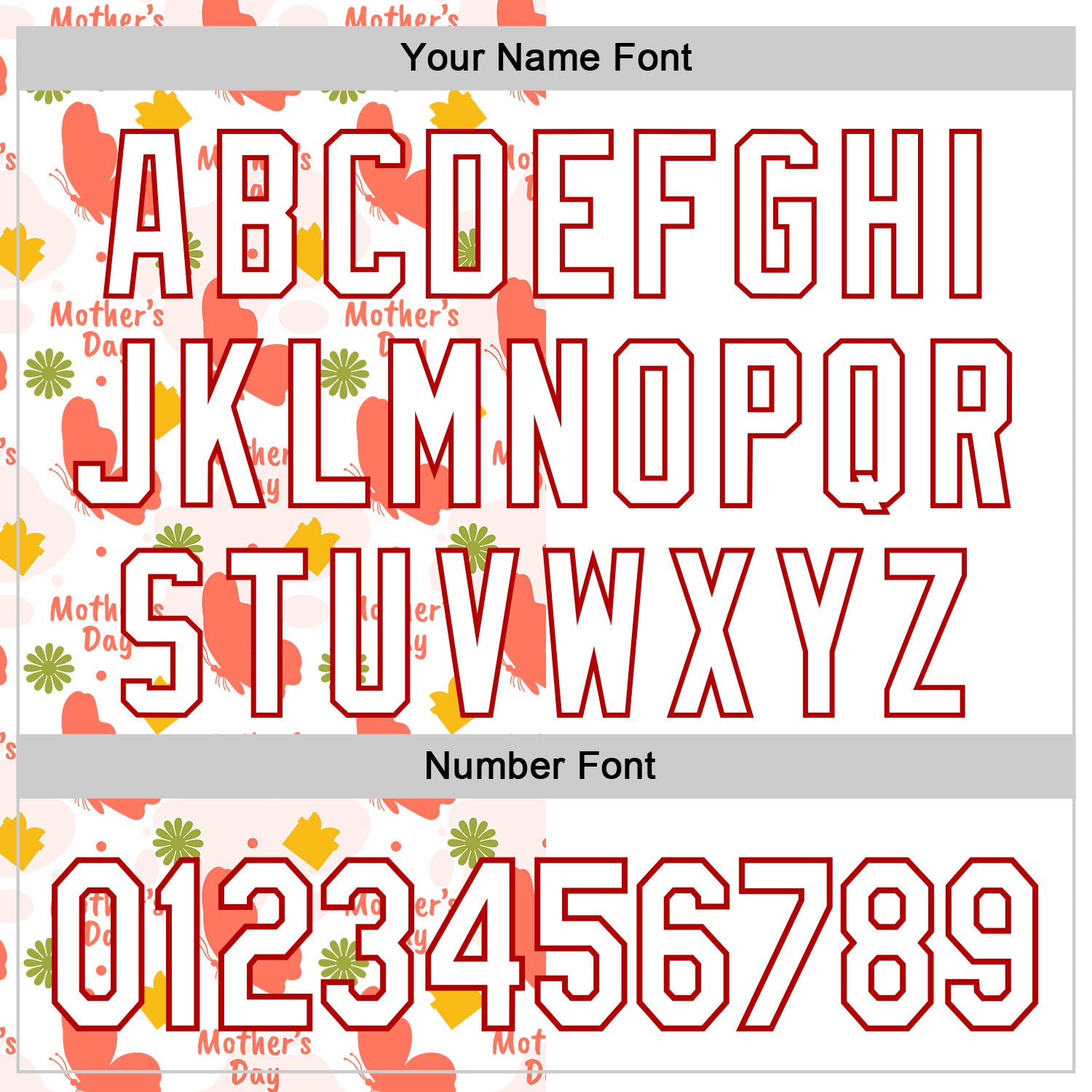 Custom White Red 3D Pattern Design Mother's Day Love Authentic Baseball Jersey