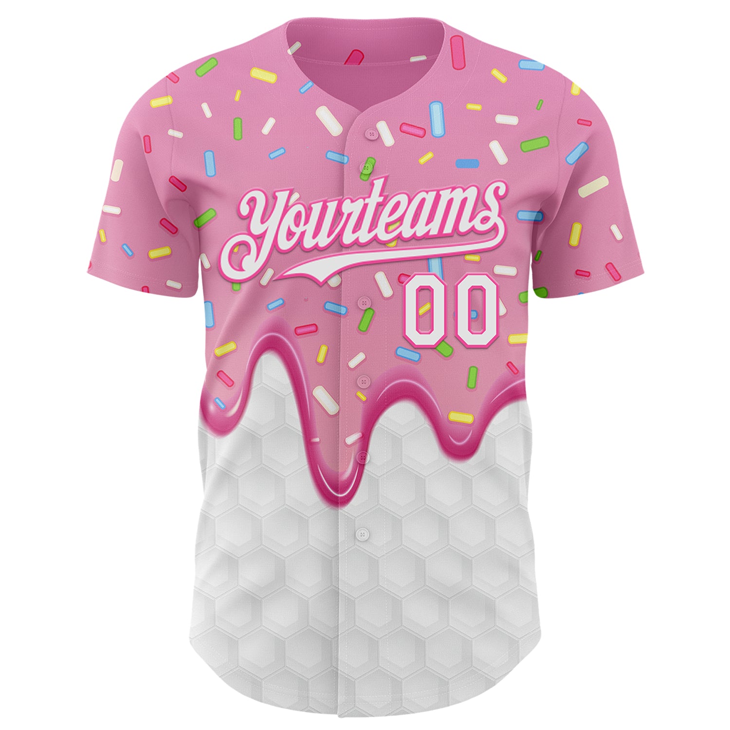 Custom Pink White 3D Pattern Design Foodie Dripping Ice Cream Authentic Baseball Jersey