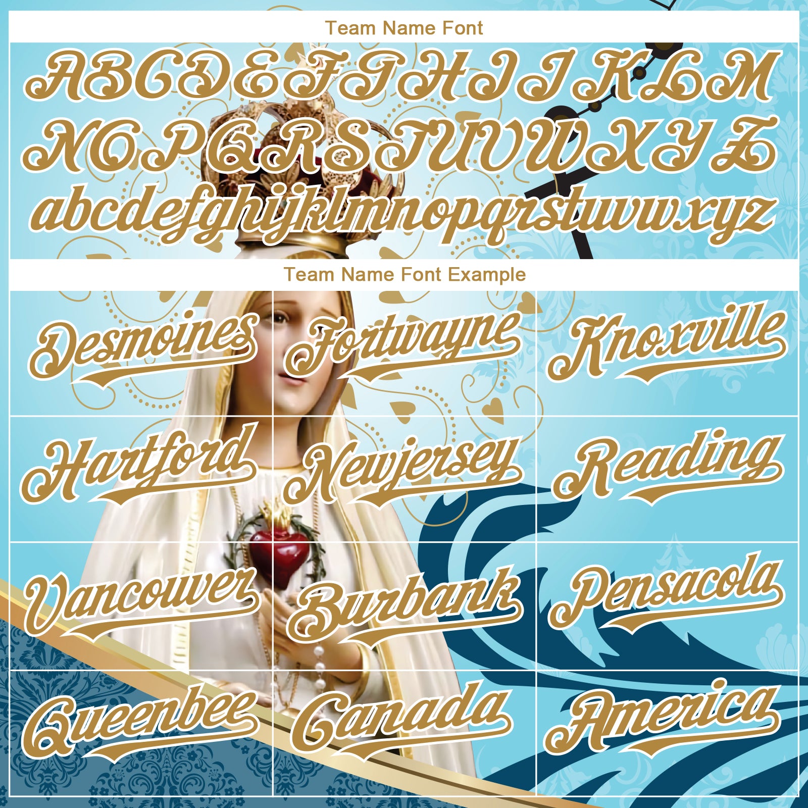 Custom Teal Old Gold-White 3D Pattern Design Religion Virgin Mary Authentic Baseball Jersey