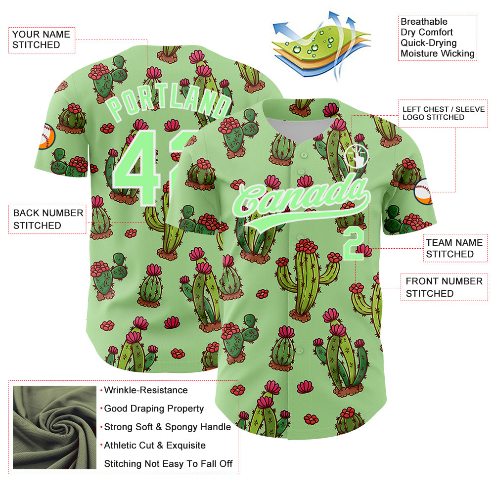Custom Green Pea Green-White 3D Pattern Design Cactus Festival Authentic Baseball Jersey
