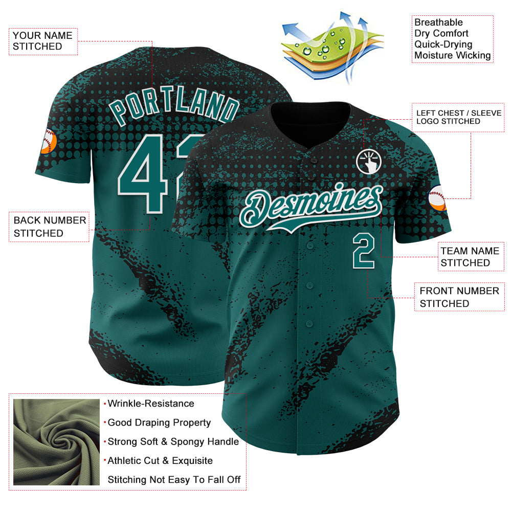 Custom Black Teal-White 3D Pattern Design Splash Grunge Fragment Authentic Baseball Jersey
