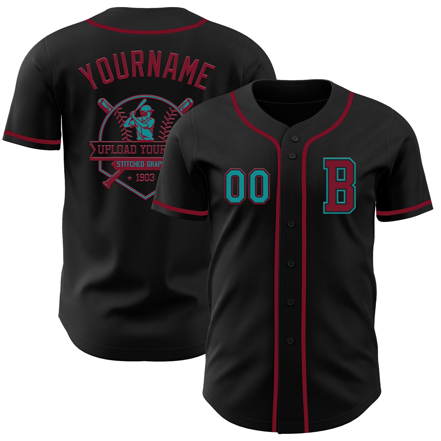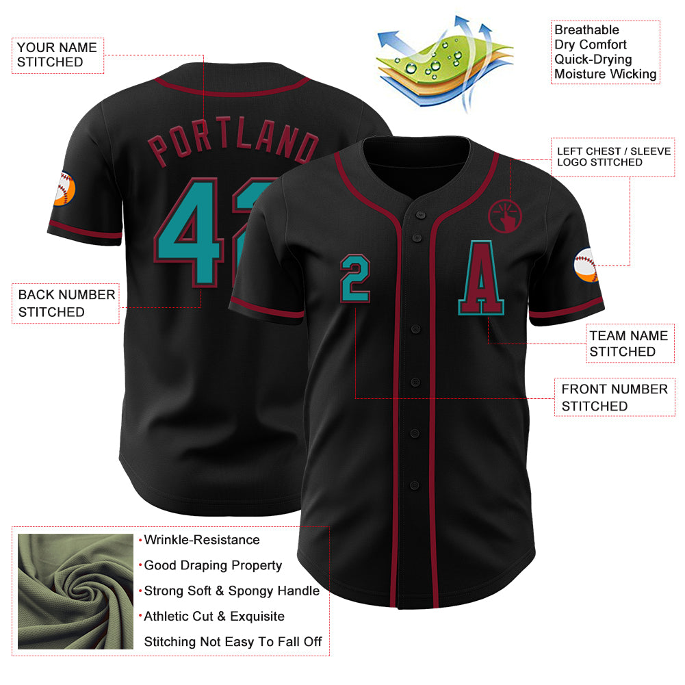 Custom Black Teal-Crimson Authentic Baseball Jersey