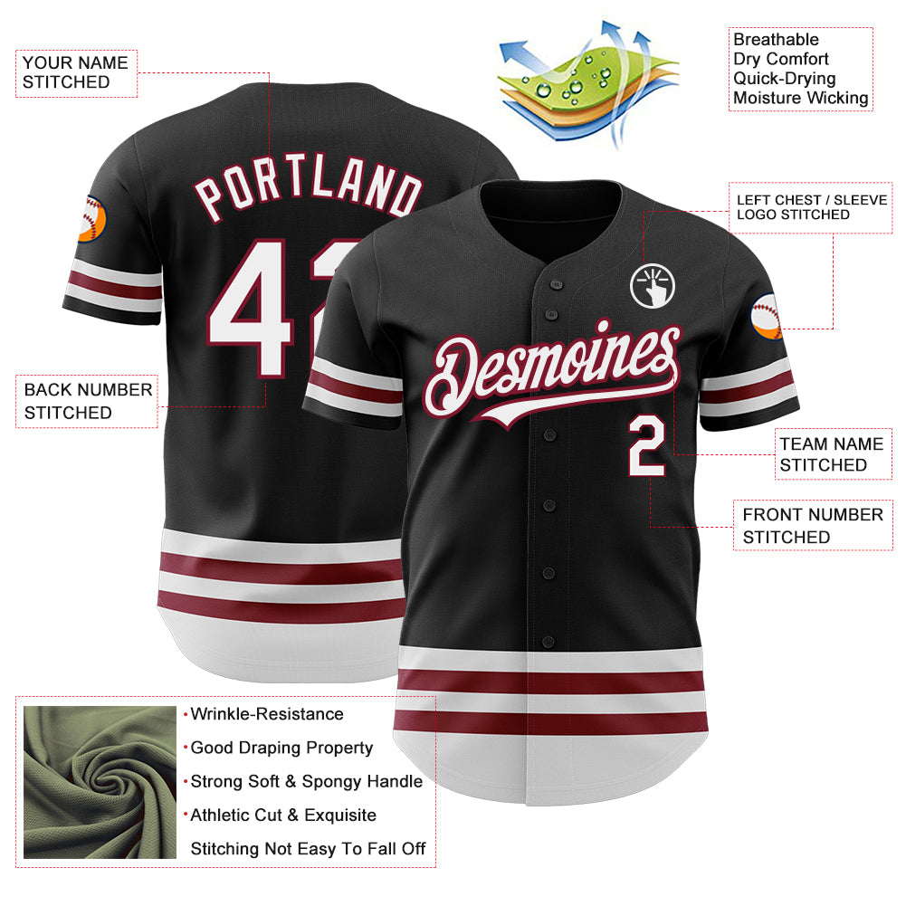 Custom Black White-Crimson Line Authentic Baseball Jersey