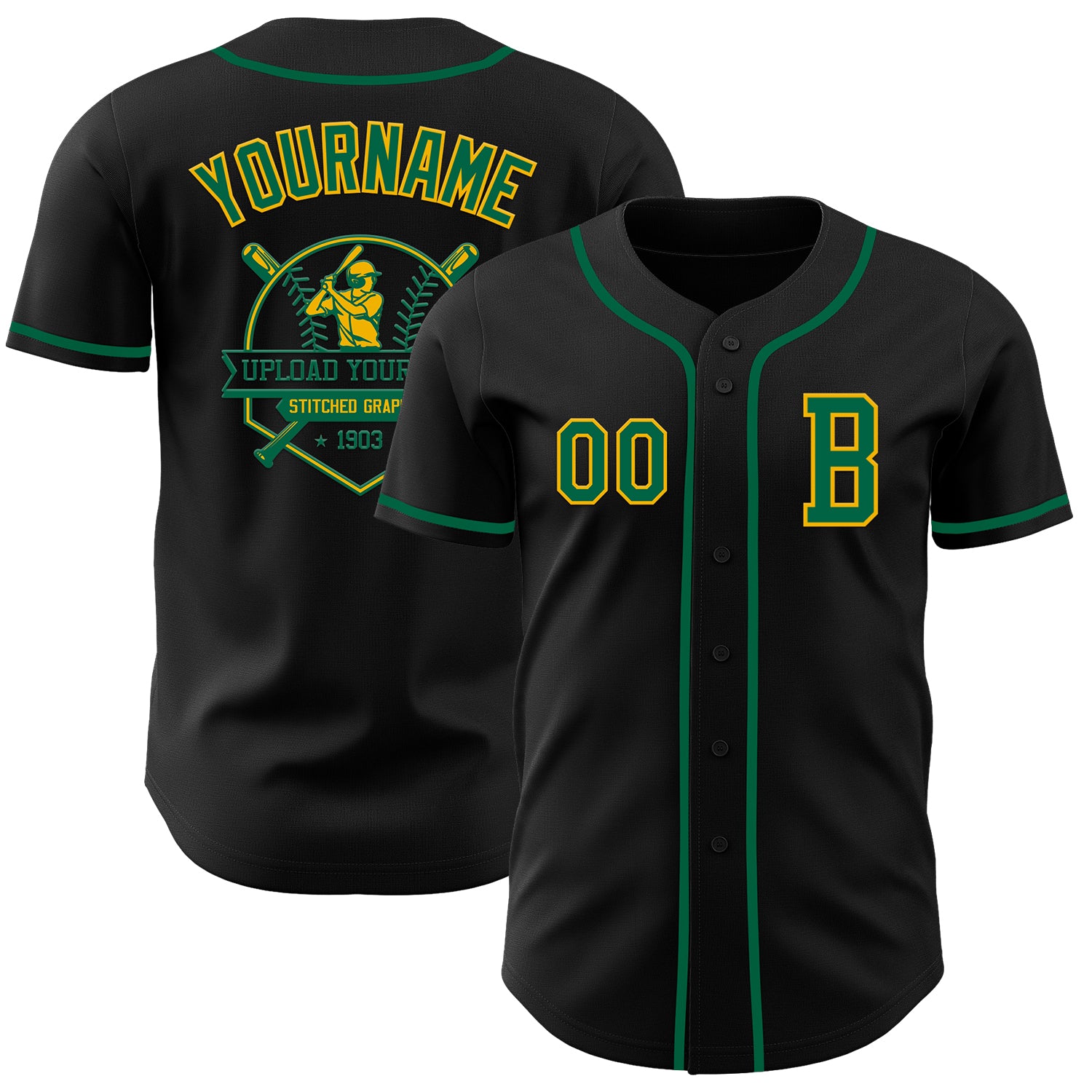 Custom Black Kelly Green-Gold Authentic Baseball Jersey