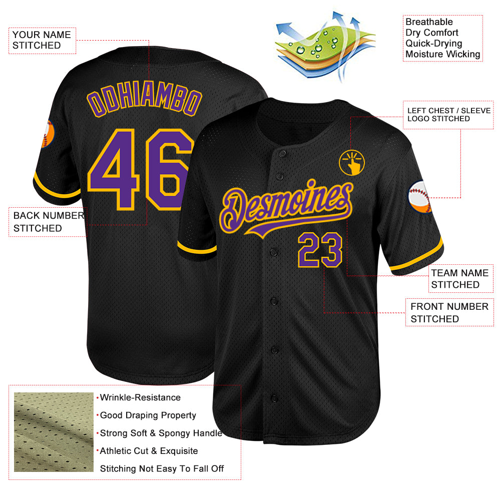 Custom Black Purple-Gold Mesh Authentic Throwback Baseball Jersey