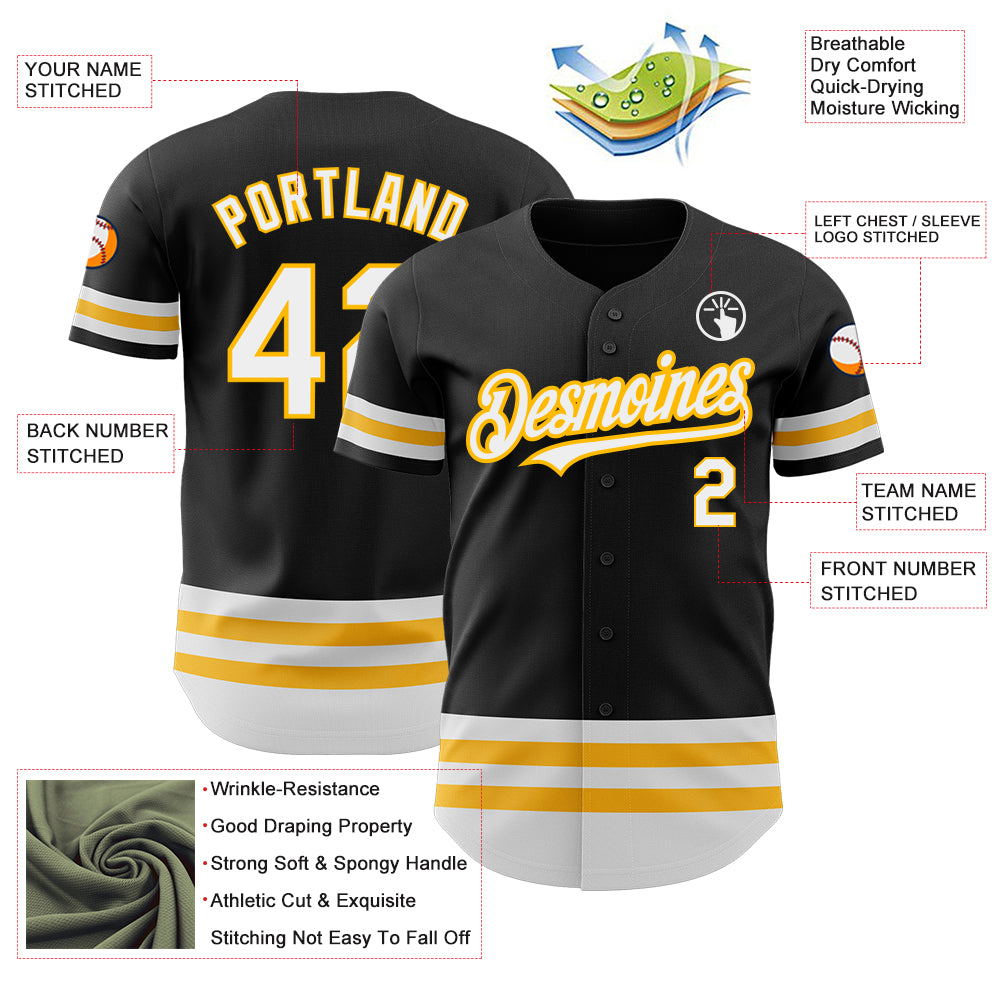 Custom Black White-Gold Line Authentic Baseball Jersey