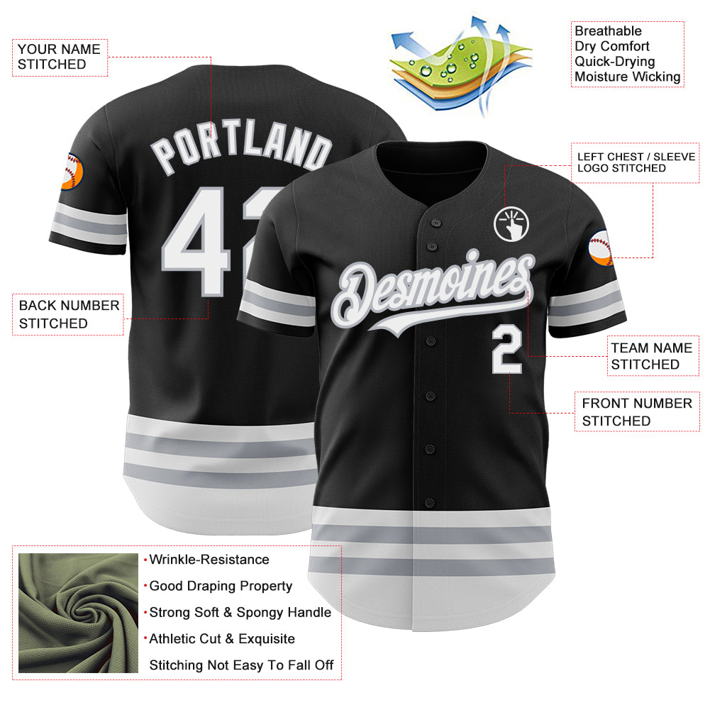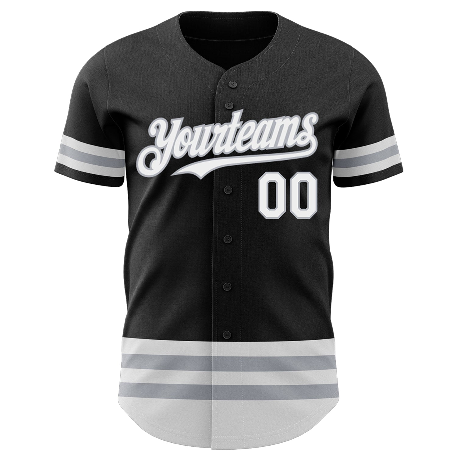 Custom Black White-Gray Line Authentic Baseball Jersey
