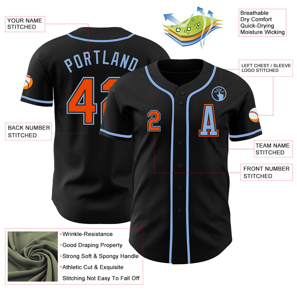 Custom Black Orange-Light Blue Authentic Baseball Jersey