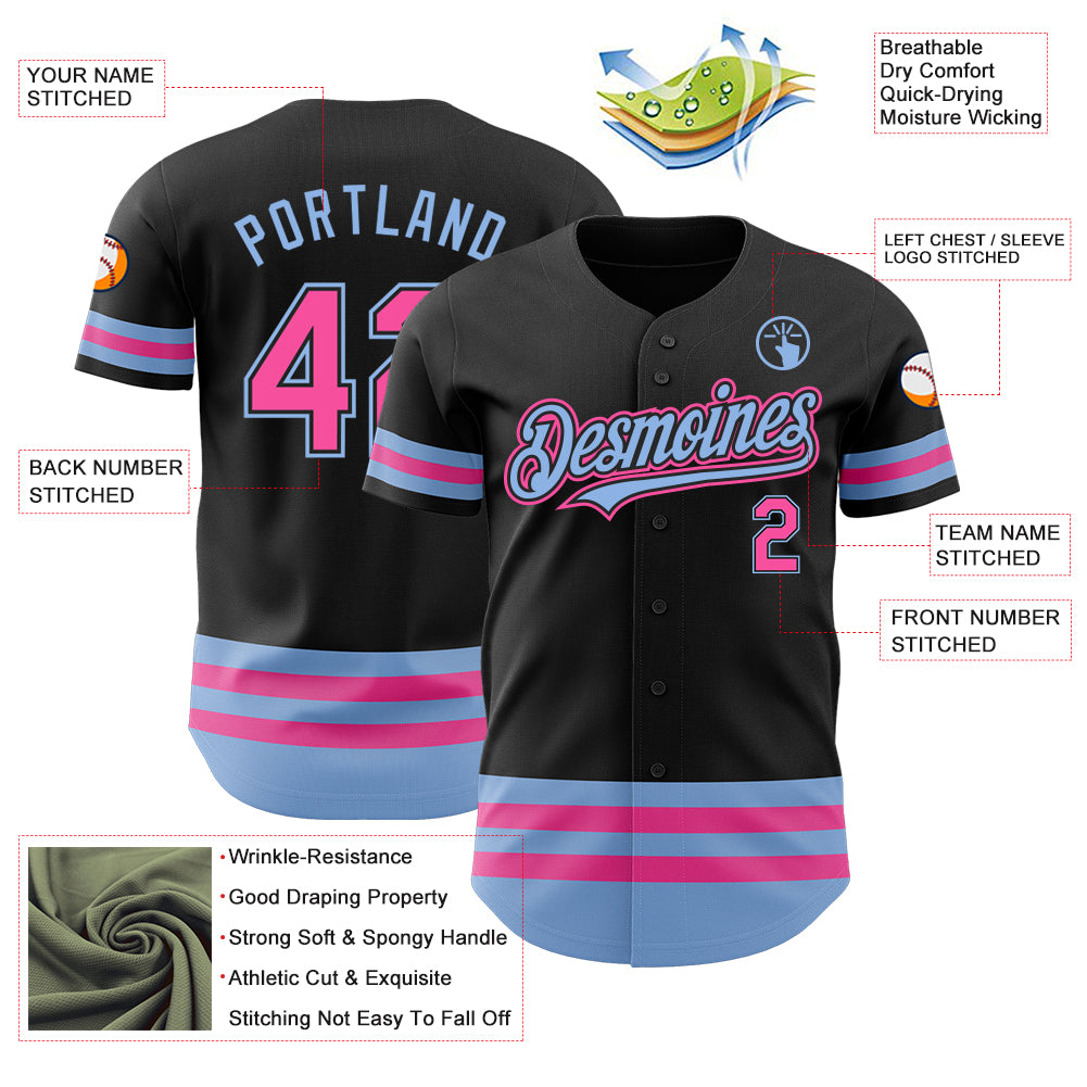 Custom Black Pink-Light Blue Line Authentic Baseball Jersey