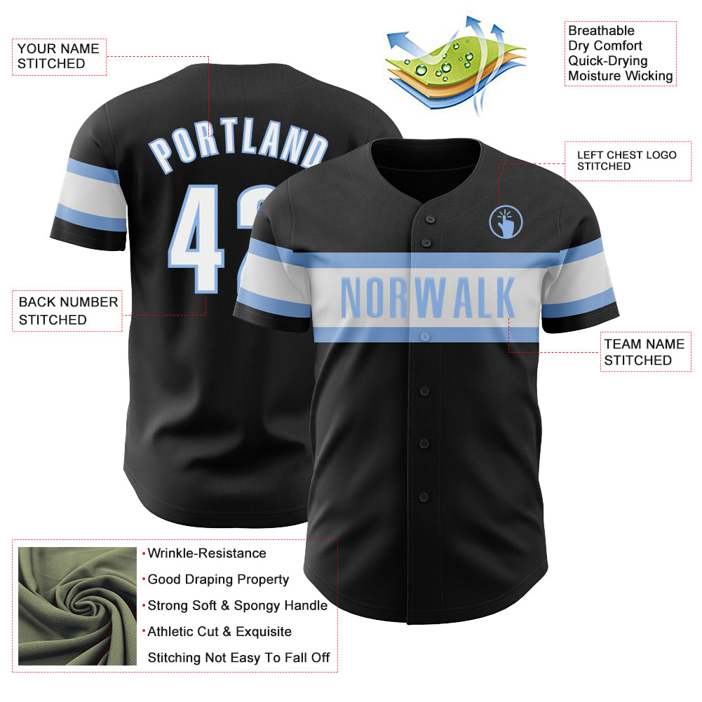 Custom Black White-Light Blue Authentic Baseball Jersey