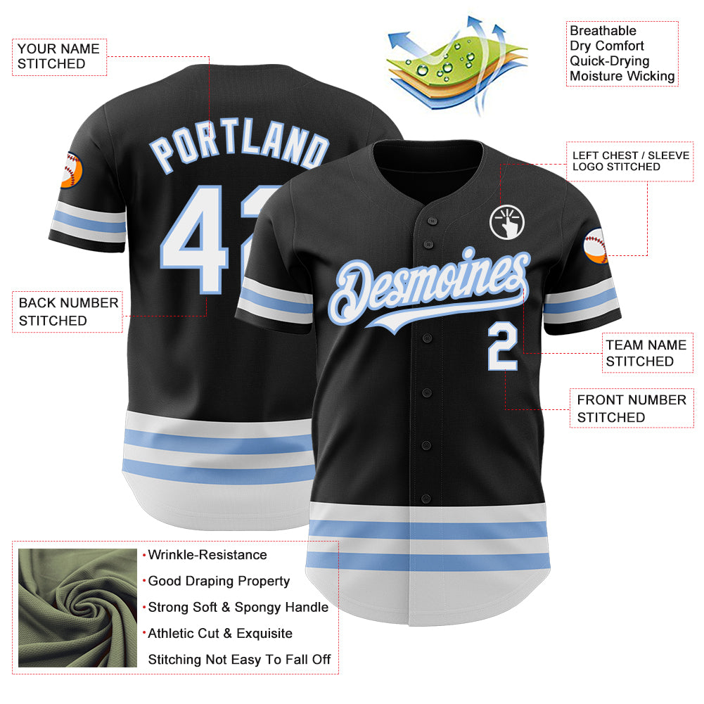 Custom Black White-Light Blue Line Authentic Baseball Jersey
