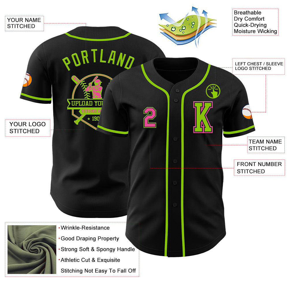 Custom Black Pink-Neon Green Authentic Baseball Jersey