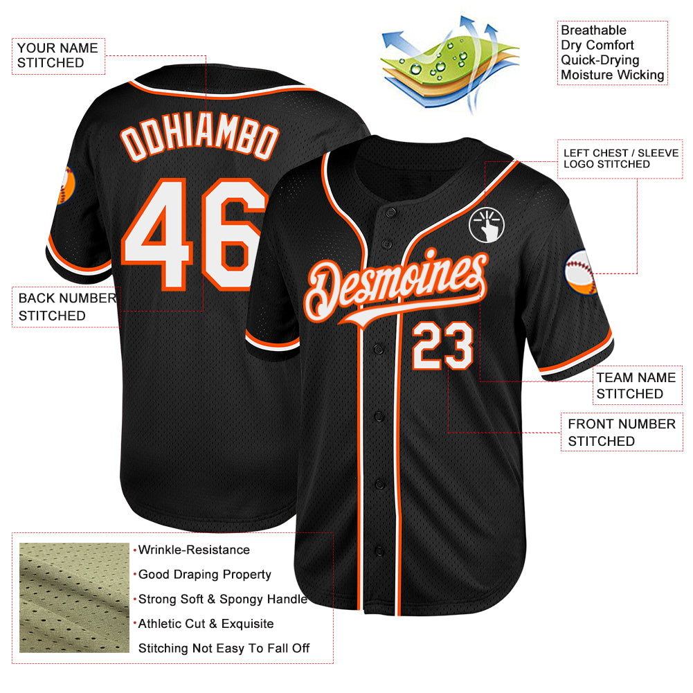 Custom Black White-Orange Mesh Authentic Throwback Baseball Jersey