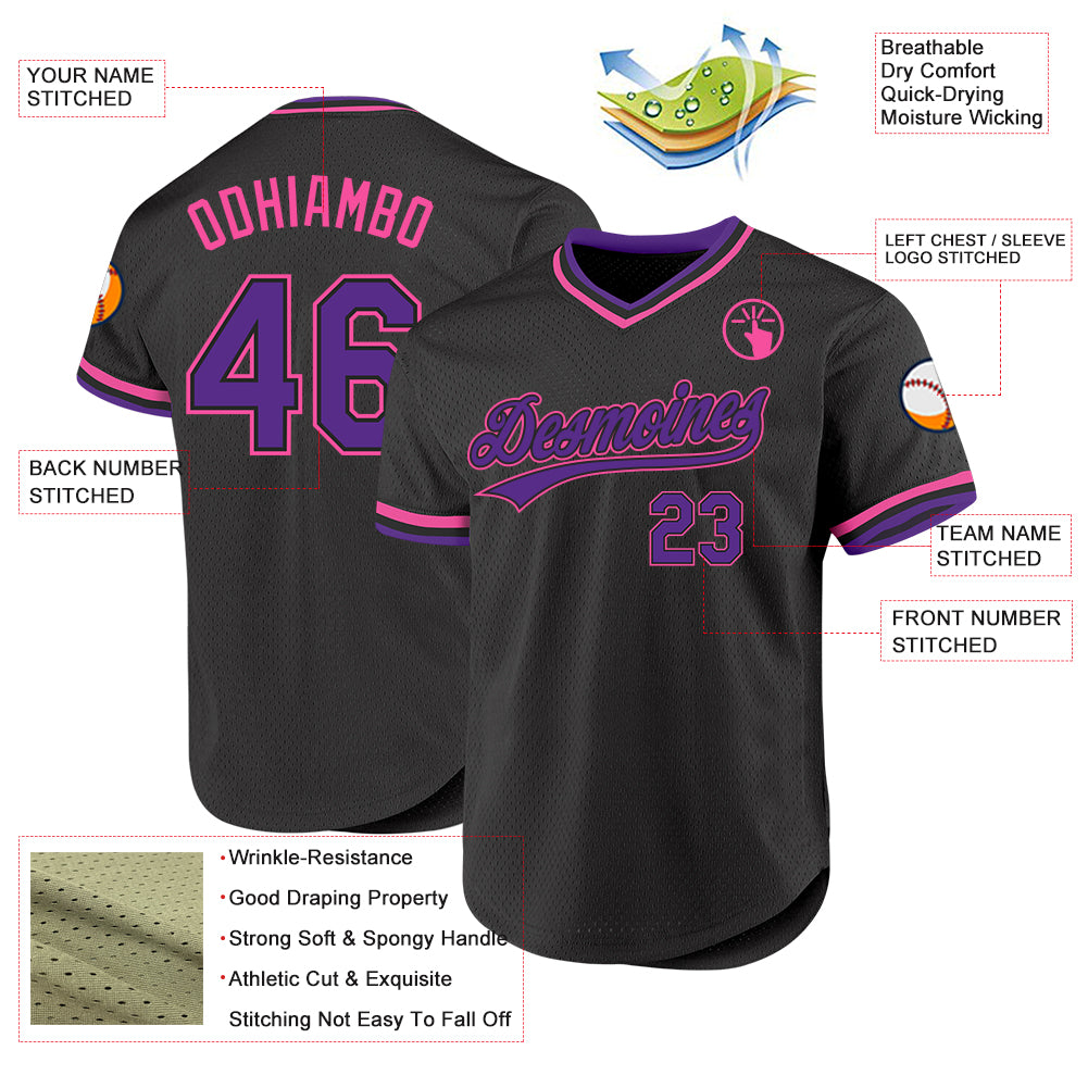 Custom Black Purple-Pink Authentic Throwback Baseball Jersey