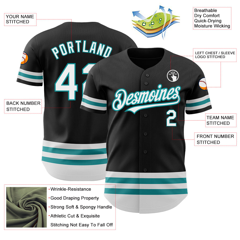 Custom Black White-Teal Line Authentic Baseball Jersey