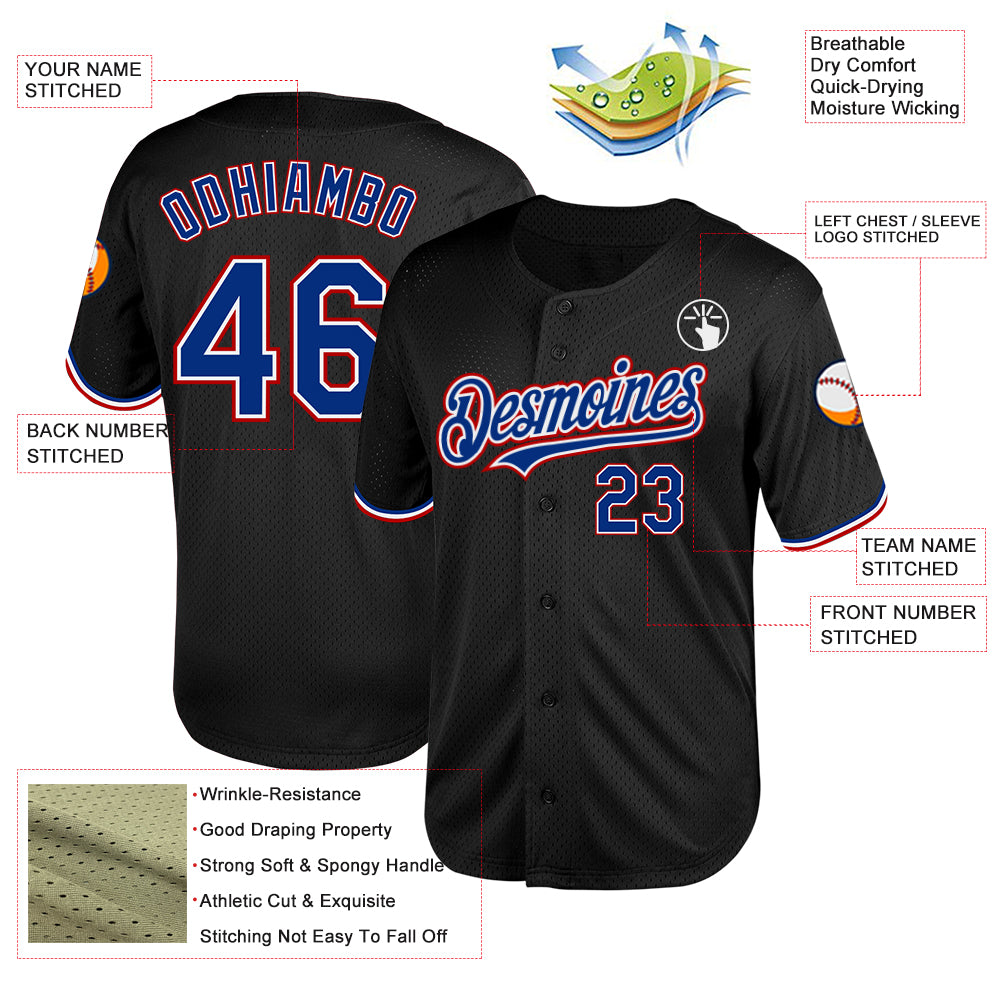 Custom Black Royal-Red Mesh Authentic Throwback Baseball Jersey