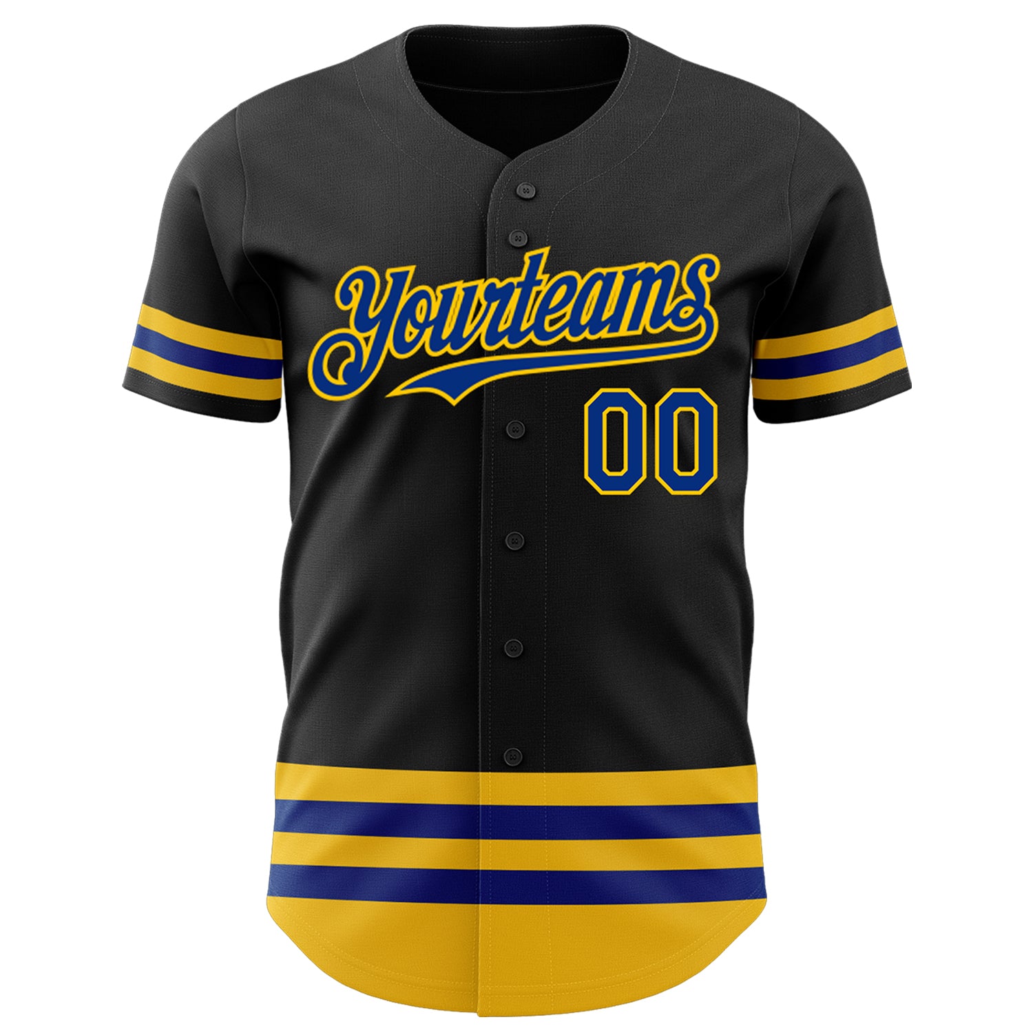 Custom Black Royal-Yellow Line Authentic Baseball Jersey