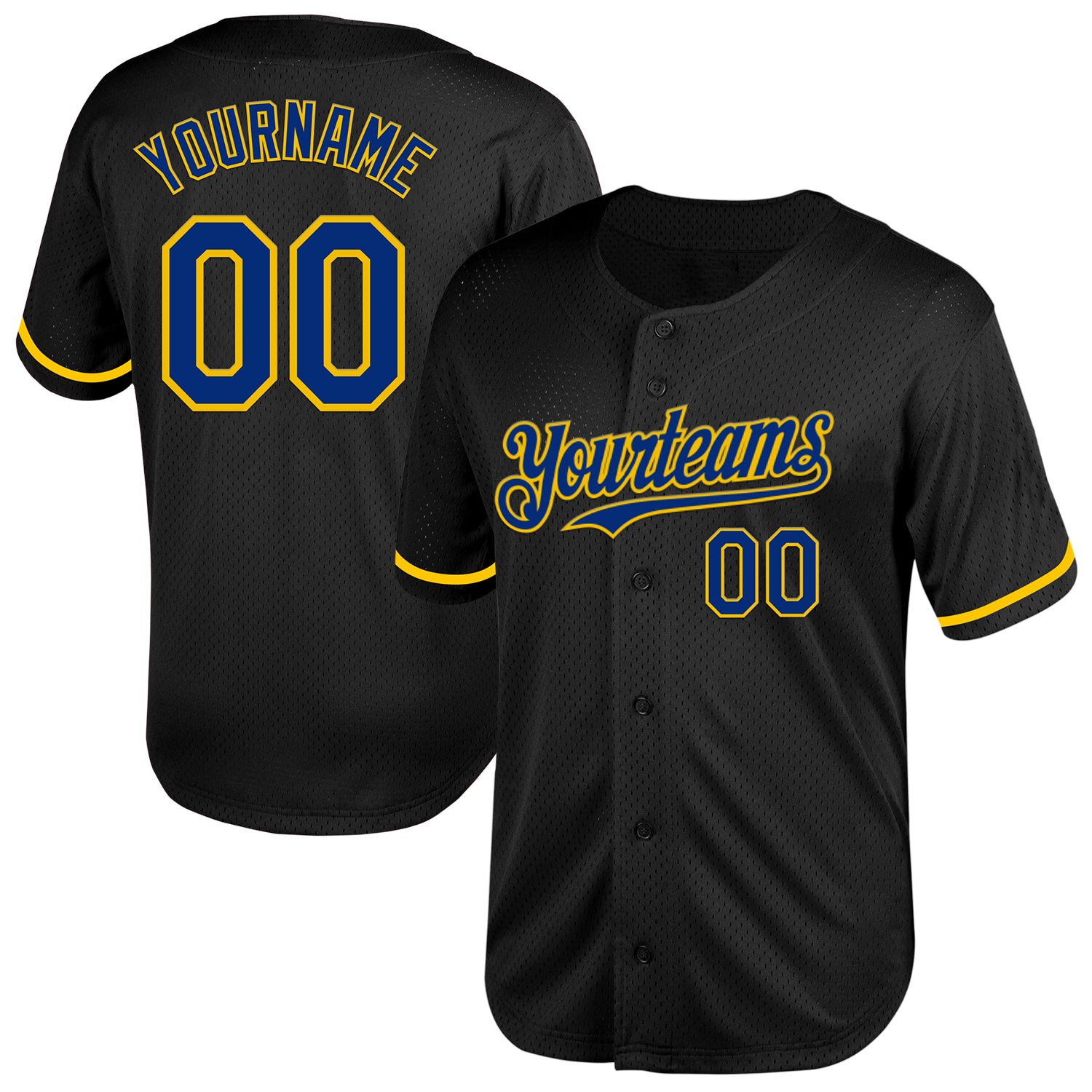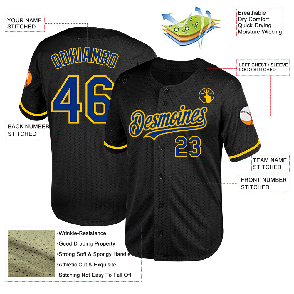 Custom Black Royal-Yellow Mesh Authentic Throwback Baseball Jersey