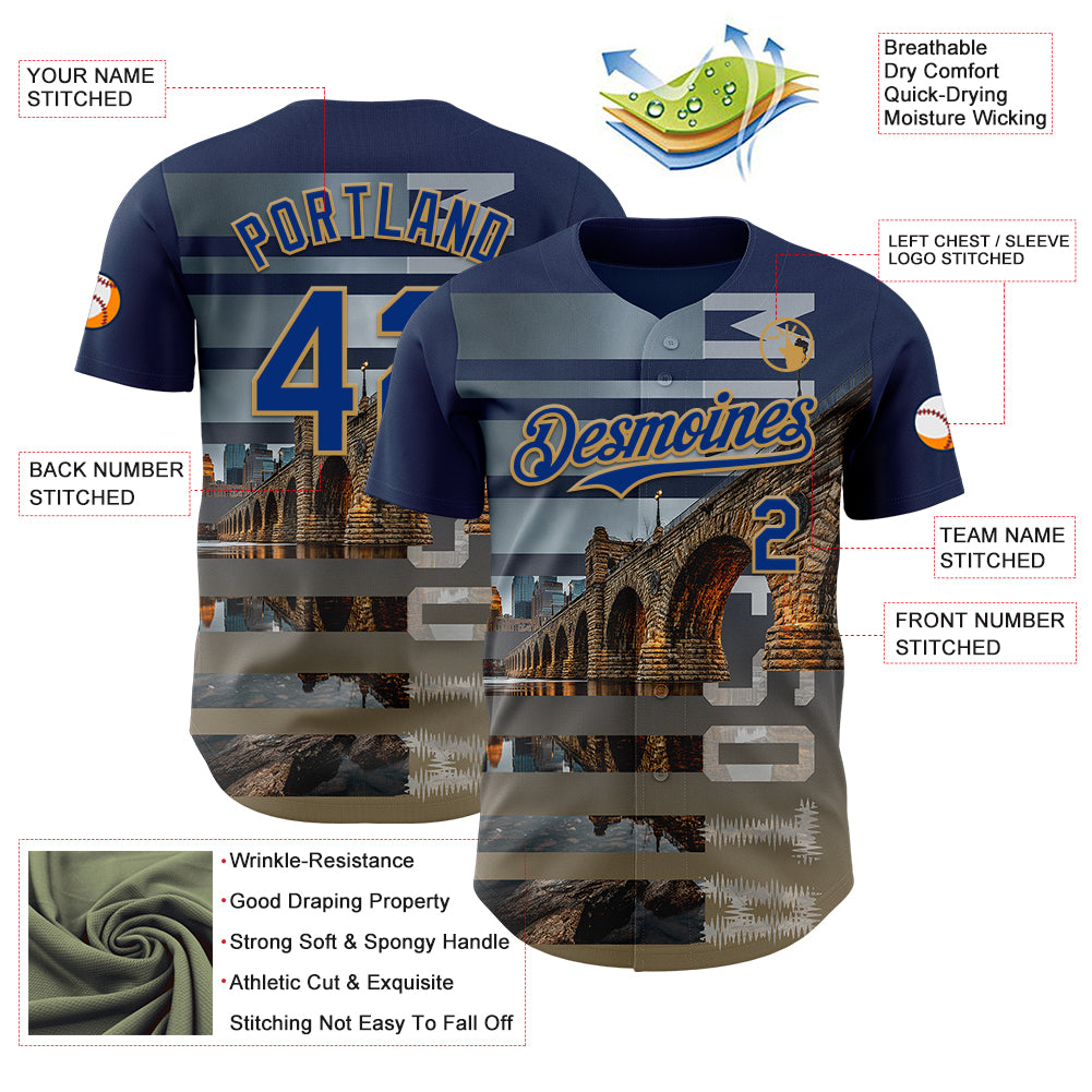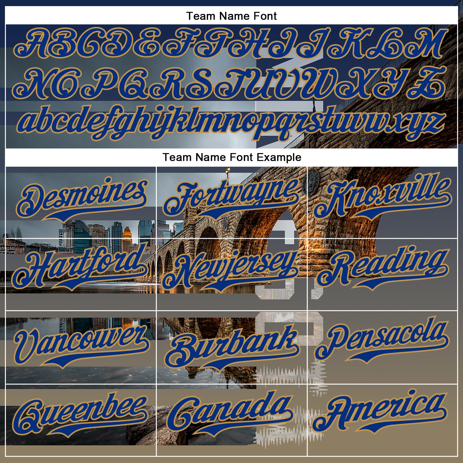 Custom Blue Royal Gray-Old Gold Minnesota Stone Bridge Landmark City Symbol Authentic Baseball Jersey