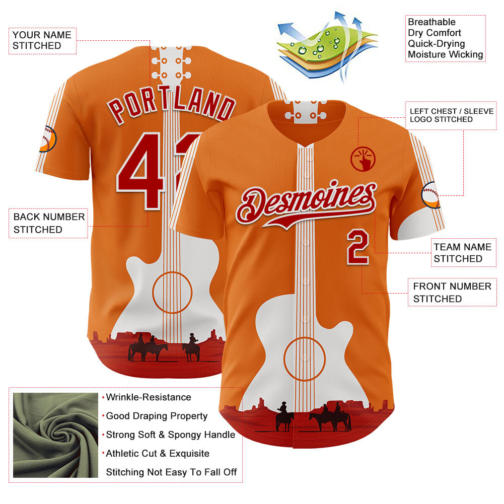 Custom Orange Red-White Texas Sunset Southwest Landscape Guitar City Edition Authentic Baseball Jersey