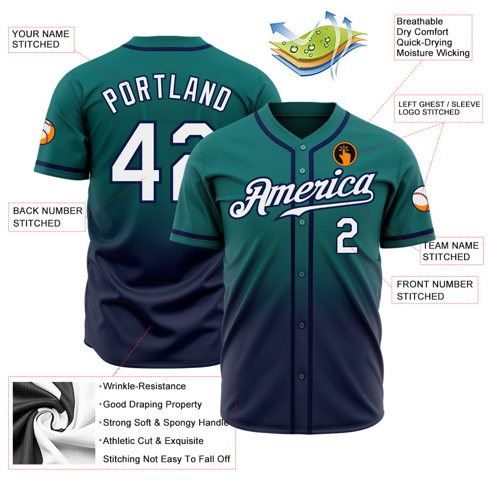 Custom Teal White-Navy Authentic Fade Fashion Baseball Jersey