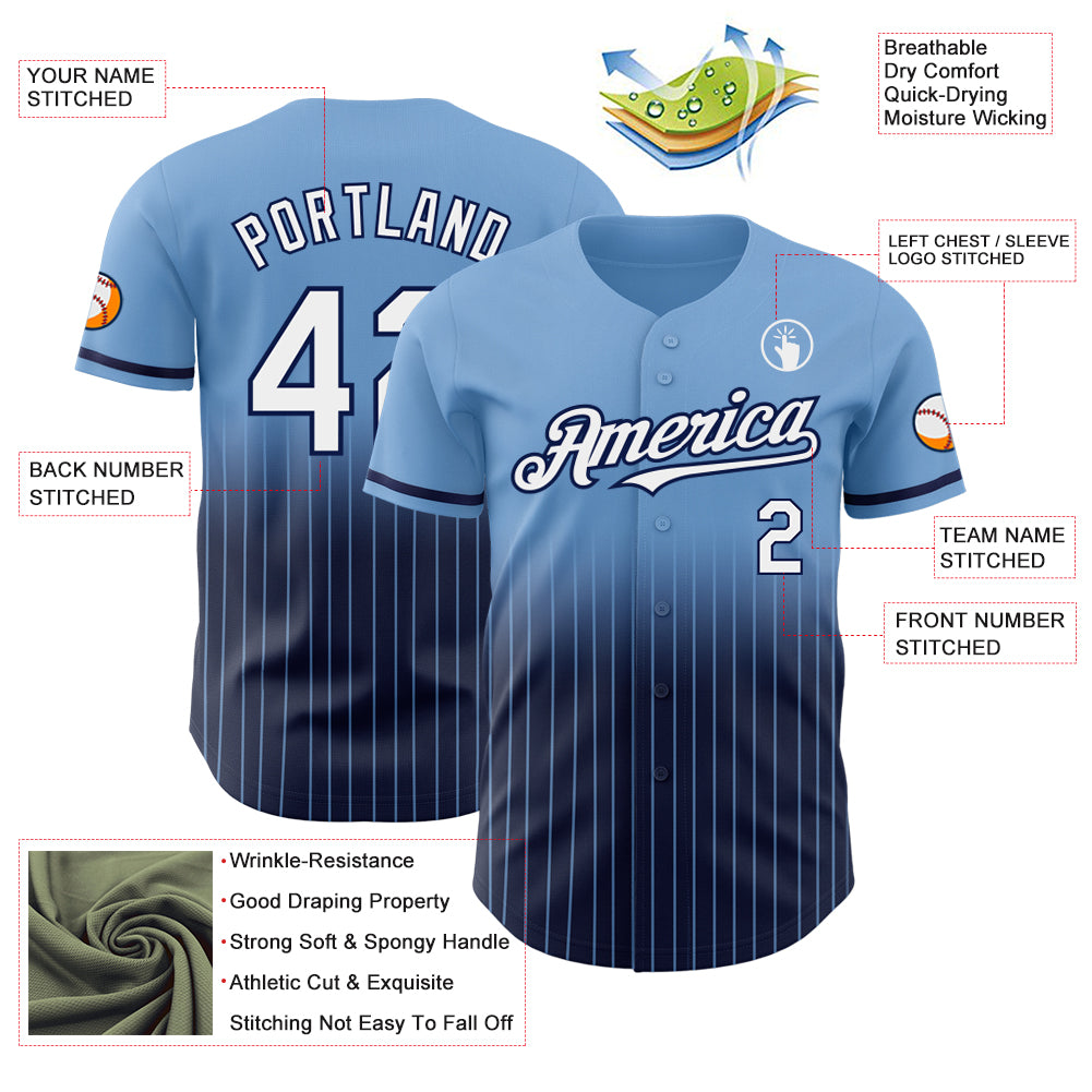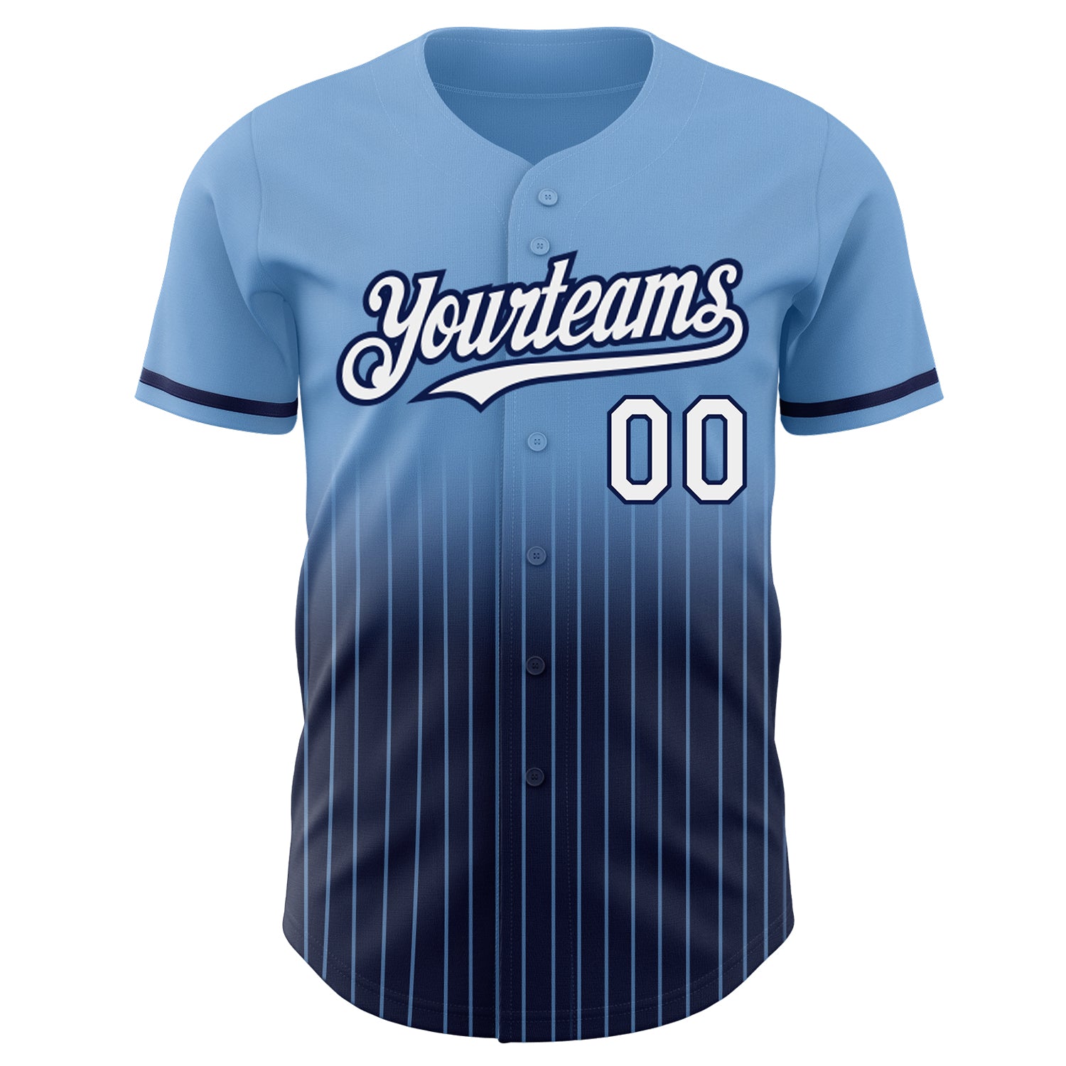 Custom Light Blue Pinstripe White-Navy Authentic Fade Fashion Baseball Jersey