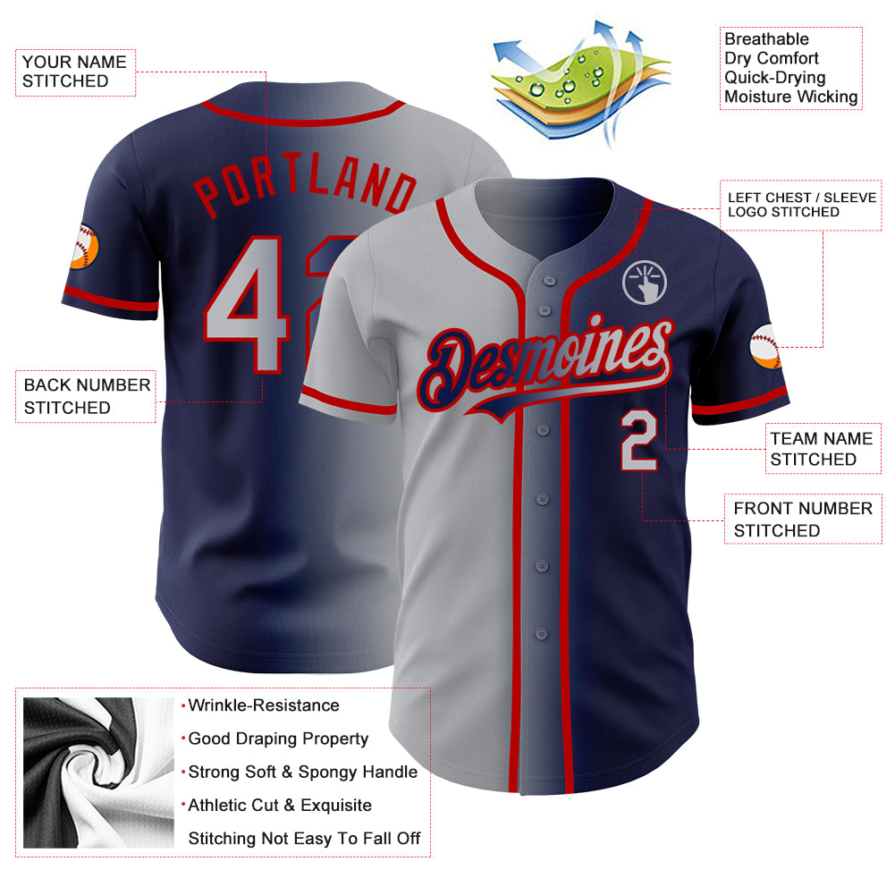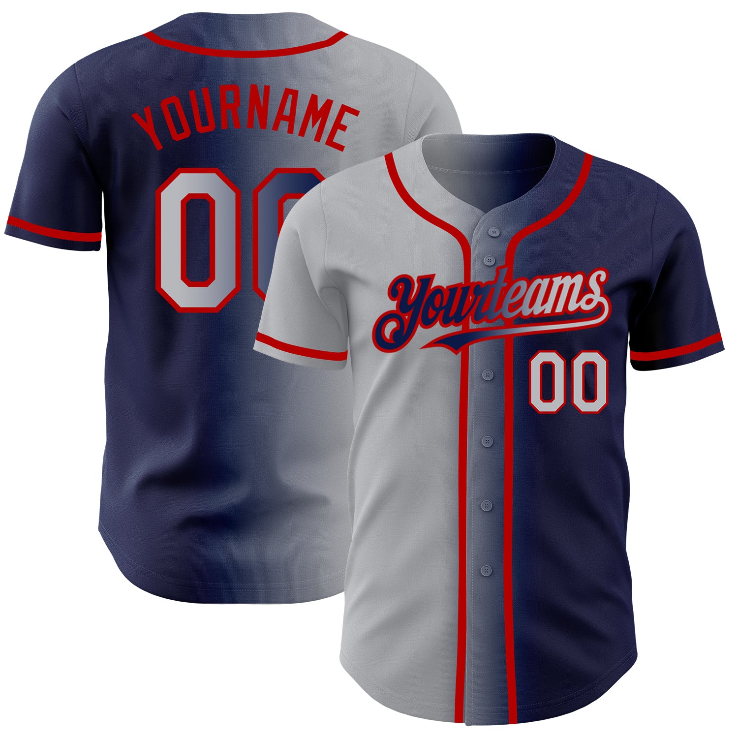 Custom Navy Gray-Red Authentic Gradient Fashion Baseball Jersey