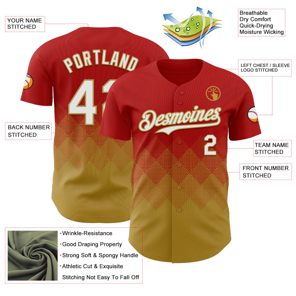 Custom Red White-Old Gold 3D Gradient Square Shape Authentic Baseball Jersey