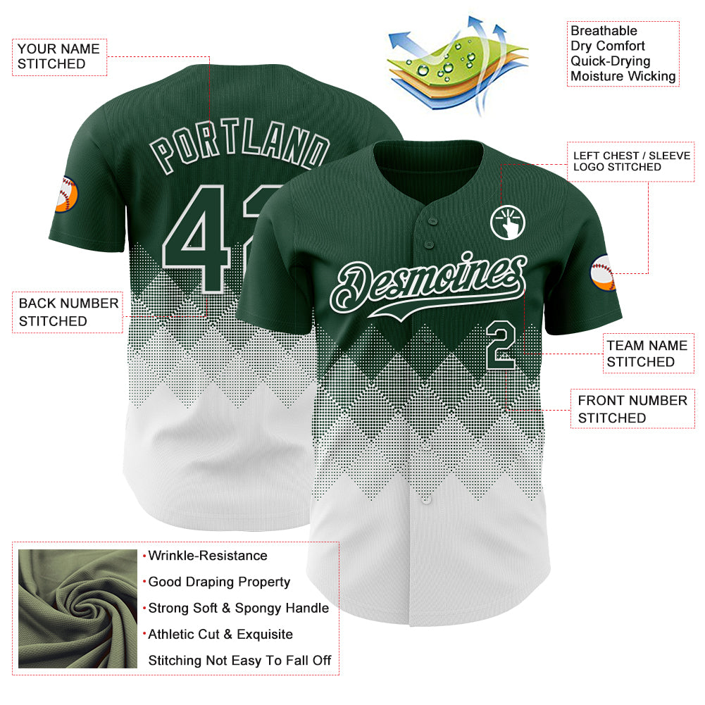Custom Green White 3D Gradient Square Shape Authentic Baseball Jersey
