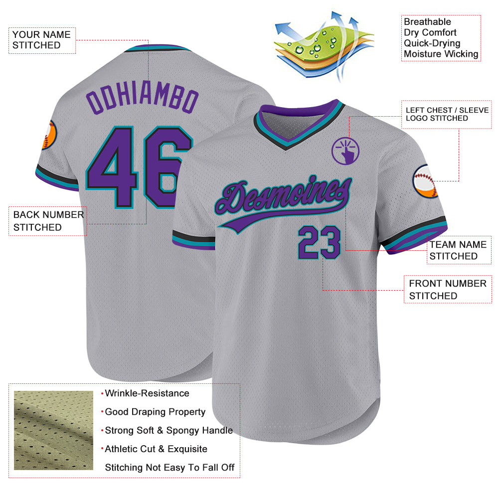Custom Gray Purple Black-Teal Authentic Throwback Baseball Jersey