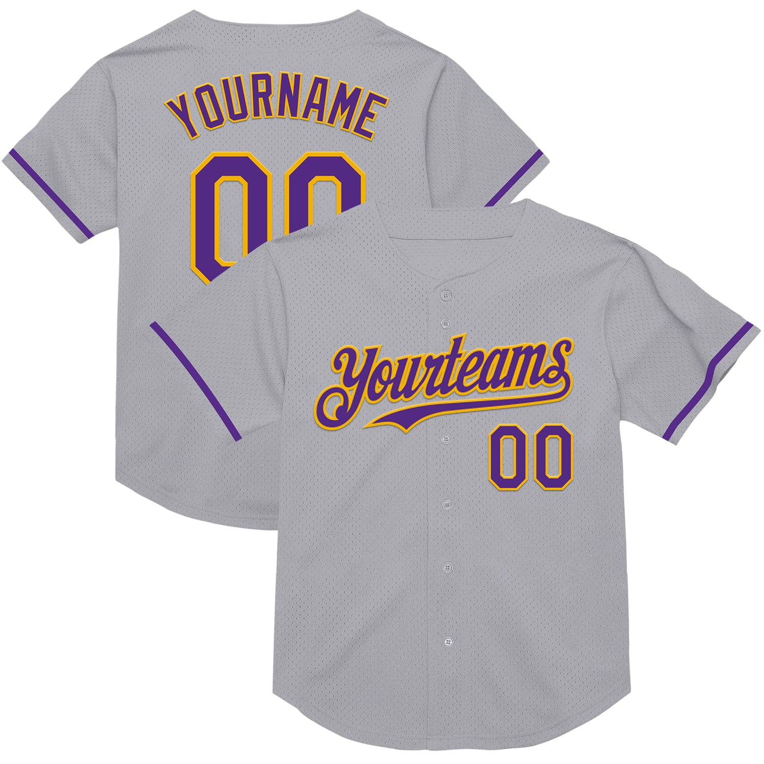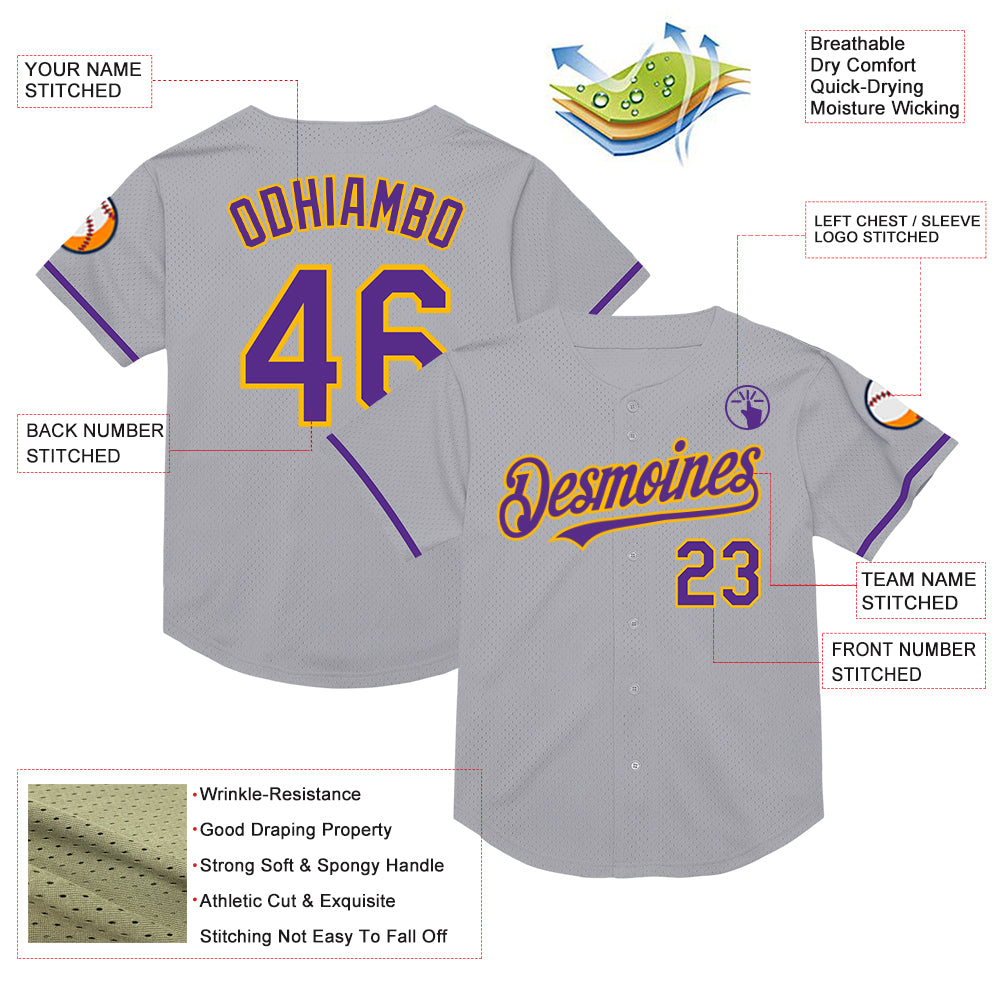 Custom Gray Purple-Gold Mesh Authentic Throwback Baseball Jersey