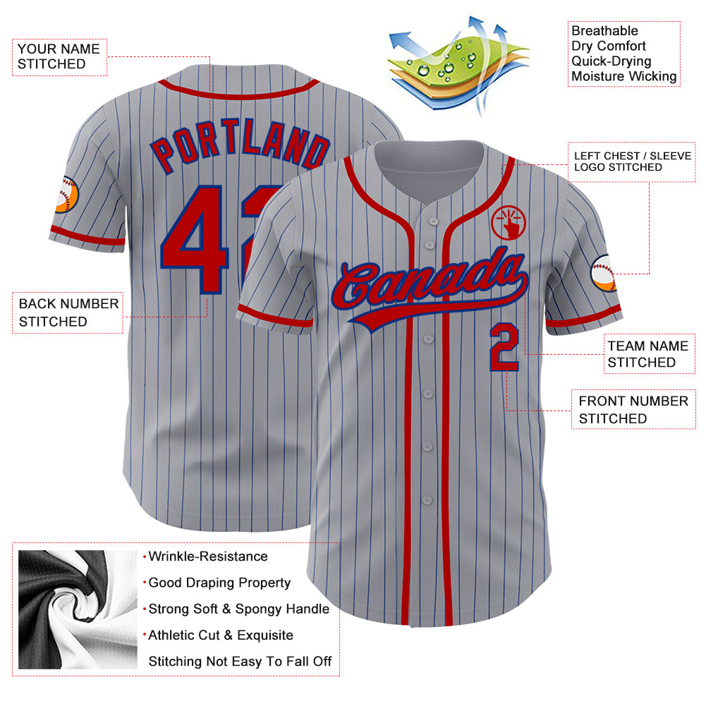 Custom Gray Royal Pinstripe Red Authentic Baseball Jersey