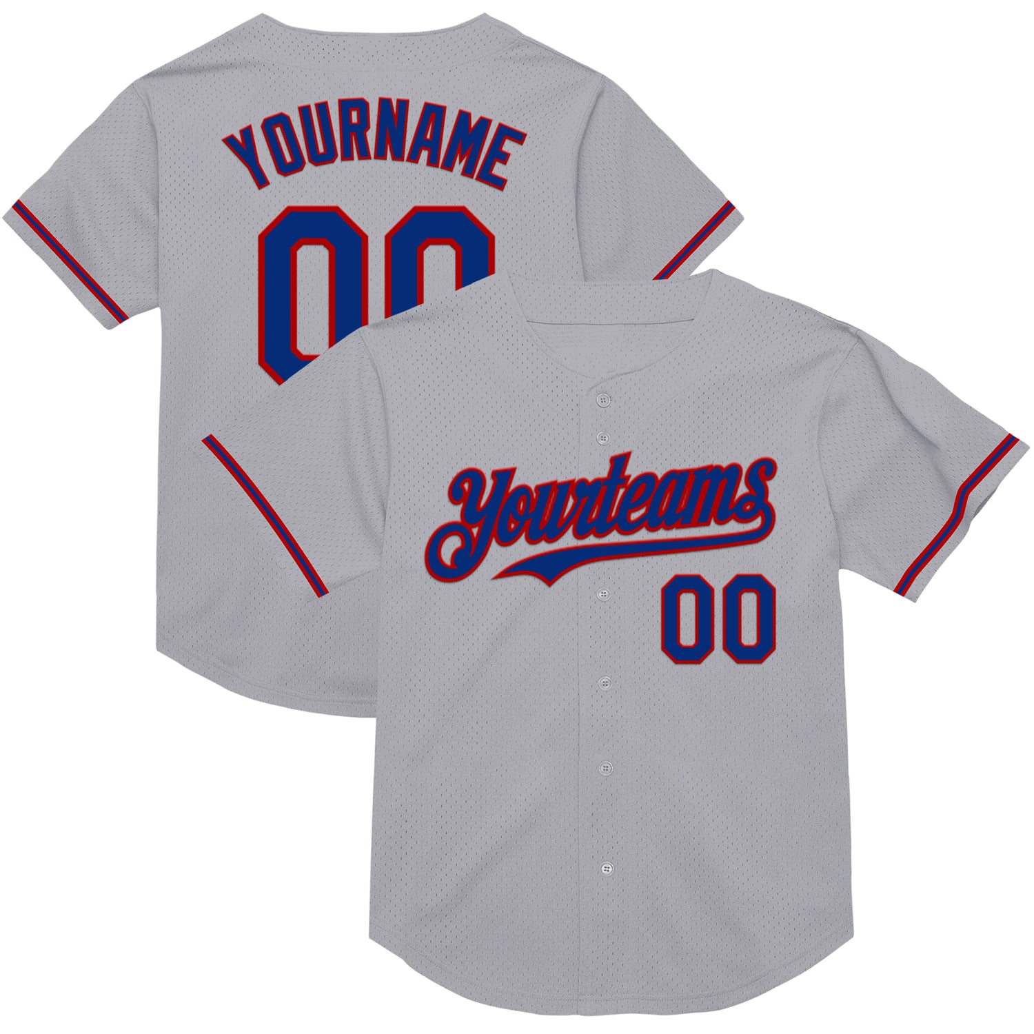 Custom Gray Royal-Red Mesh Authentic Throwback Baseball Jersey